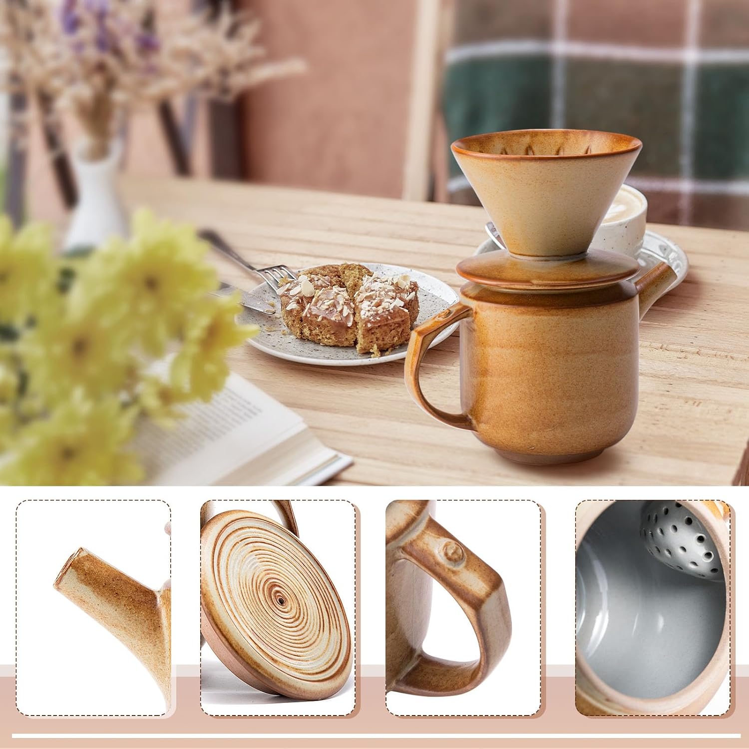 - HIGH-QUALITY CERAMIC CARAFE:The drip coffee pour over set is made of high quality ceramic ,durable, heat-resistant,with lid to keep warm,that is both functional and elegant.