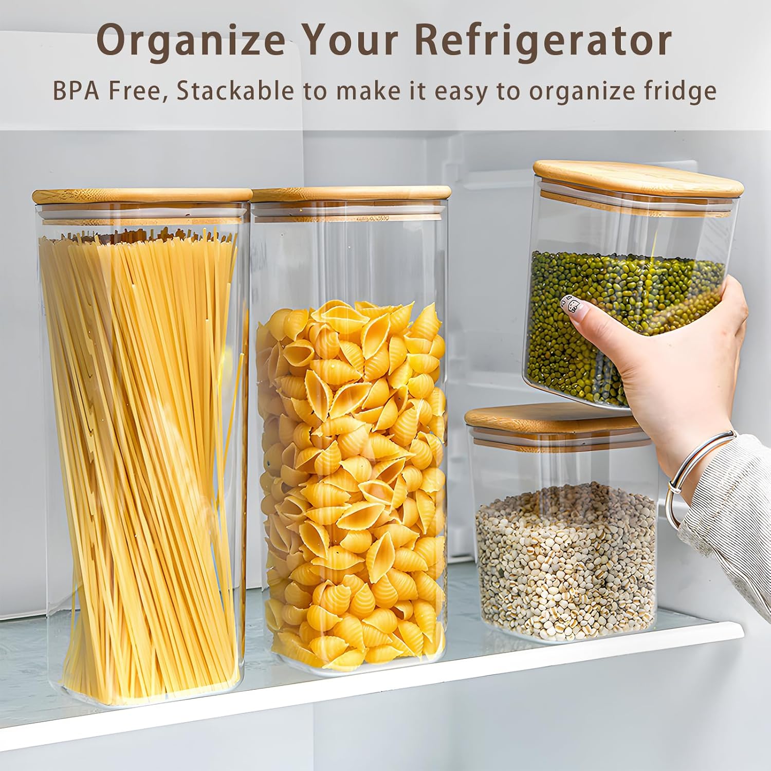 Square Storage Containers with Lids, Clear Food Storage Container Jar with Sealing Bamboo Lid for Noodles Flour Cereal Rice Sugar Tea Coffee Beans