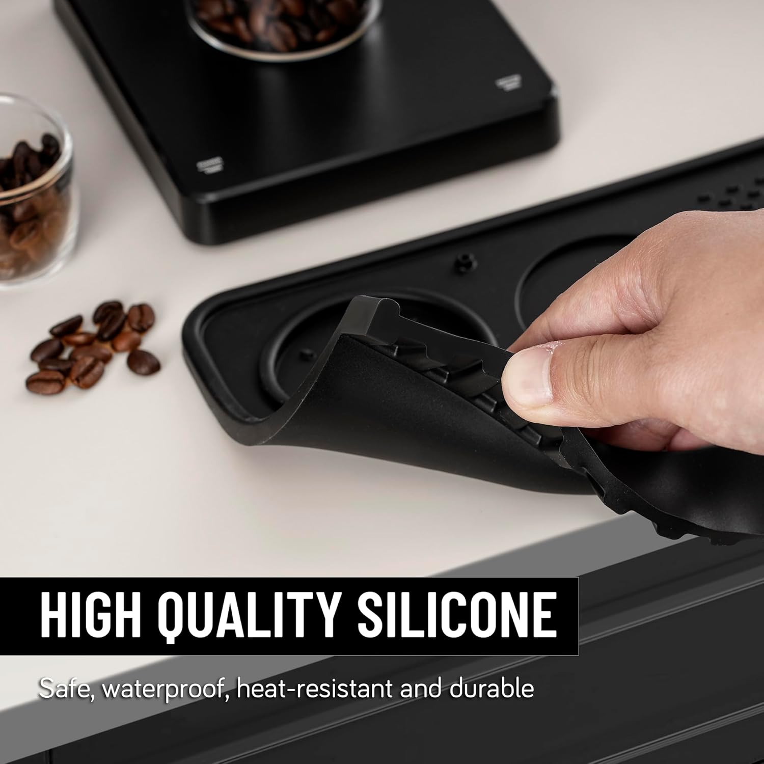 - 【Perfect Size】Dimensions: 10.43″ × 5.63″, the moderate size won't take up too much space on your countertop. The corner overhang design fits snugly on your desktop without sliding easily. The 4.5mm thickened silicone protects your surface from heavy tampers while also reducing metal collision noise