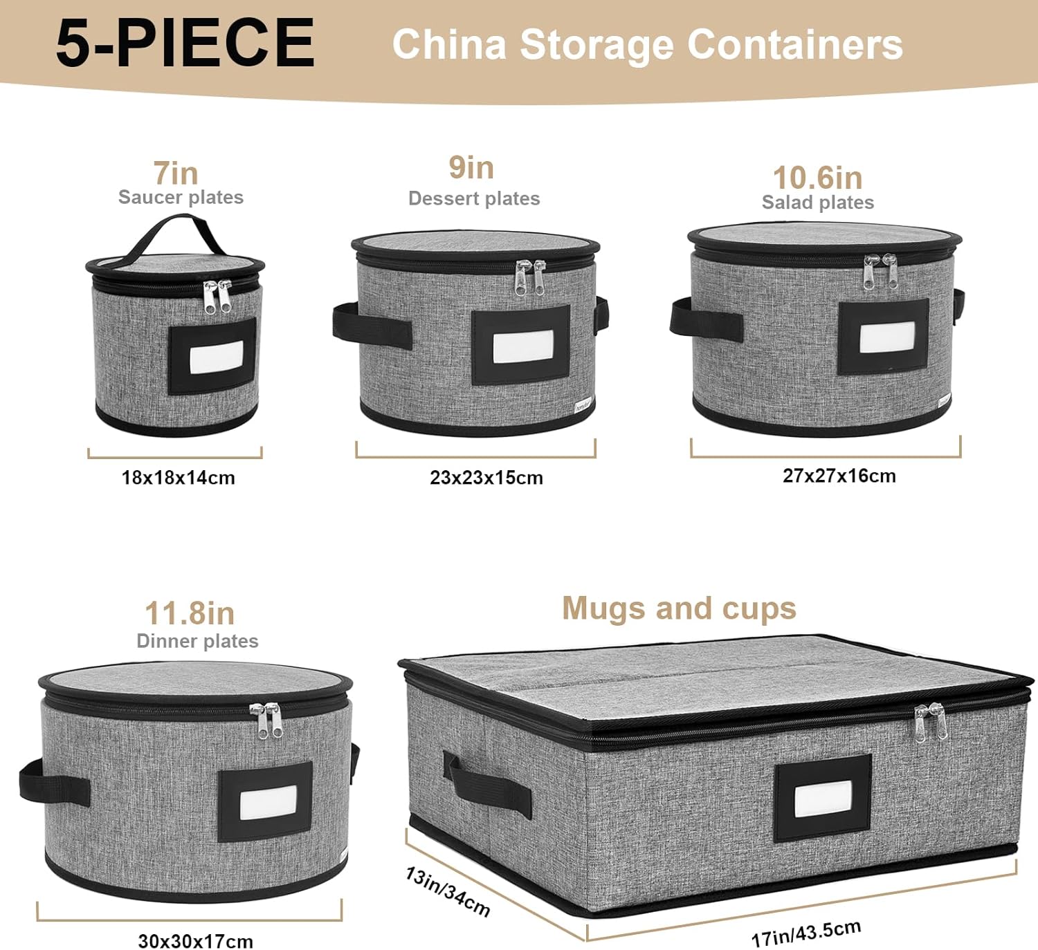 China Storage Containers, Hard Shell with Felt Dividers for Plates, Moving Boxes for Dishes, Cups, Mugs, Tableware Moving Supplies for Kitchen Organization- 5-Piece Set