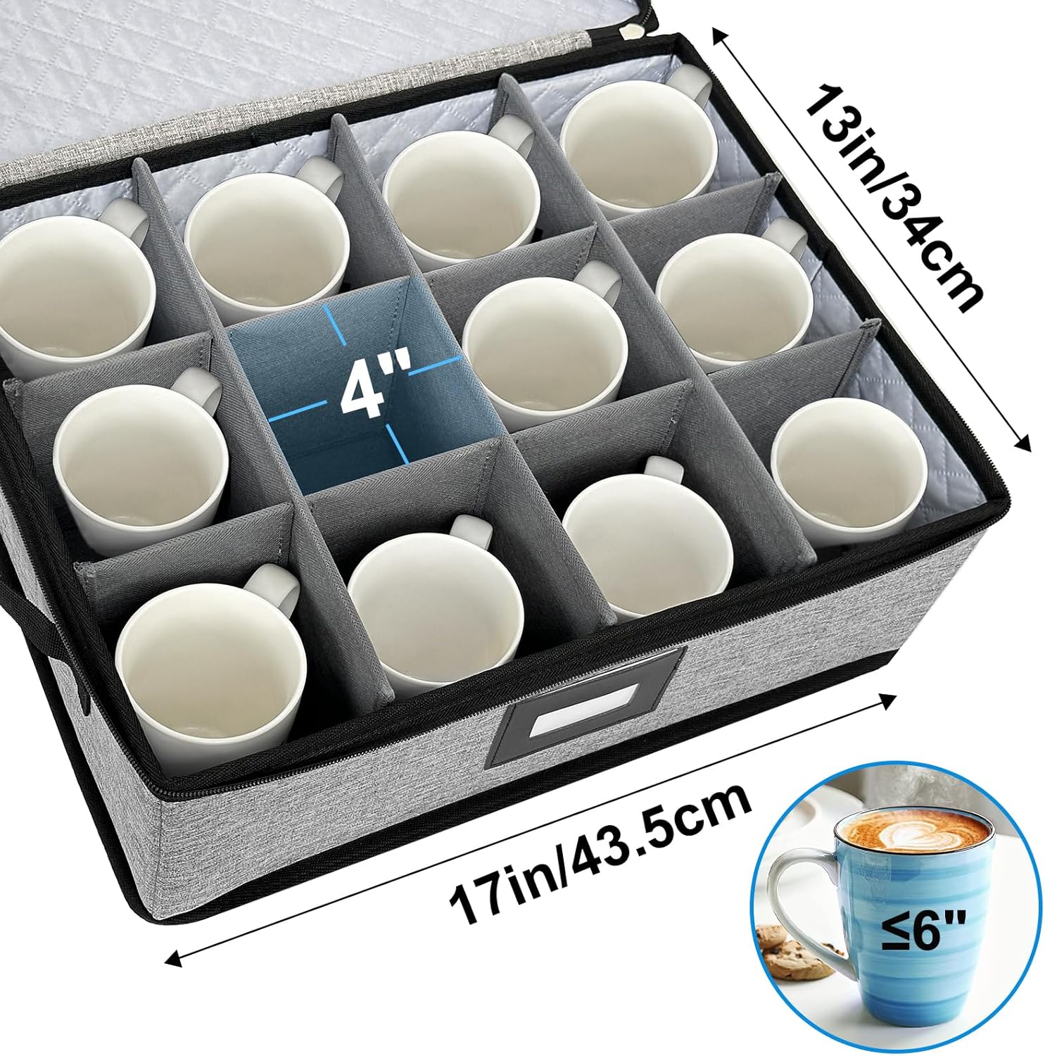 - 🥛5-Piece China Storage Set:This China organizer includes 4 plate cases (11" dinner, 10" salad, 9" dessert, 7" saucer) and 1 mug case (holds 12 cups). Includes 48 thick felt dividers for perfect spacing of all your tableware