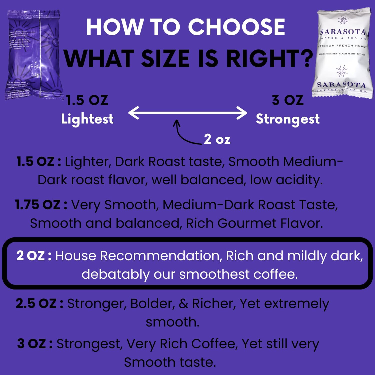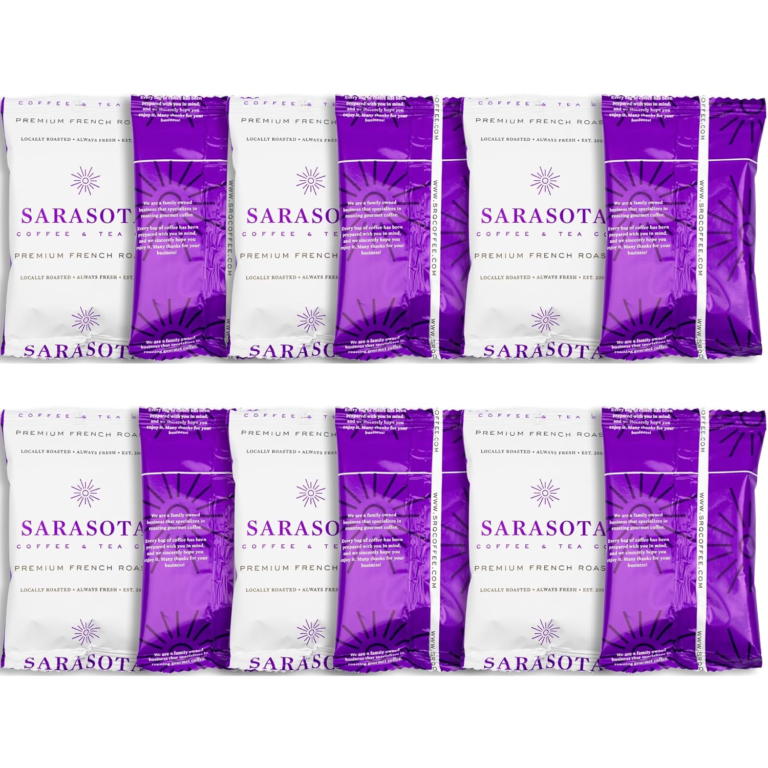 Sarasota Coffee Ground Packets | Gourmet Dark French Roast Ground Coffee Packs | Cubano European | Low Acid Mold Free Singles Individual Pouches for 12 Cup Coffee Maker | 2 Ounce Bags, 12 Count