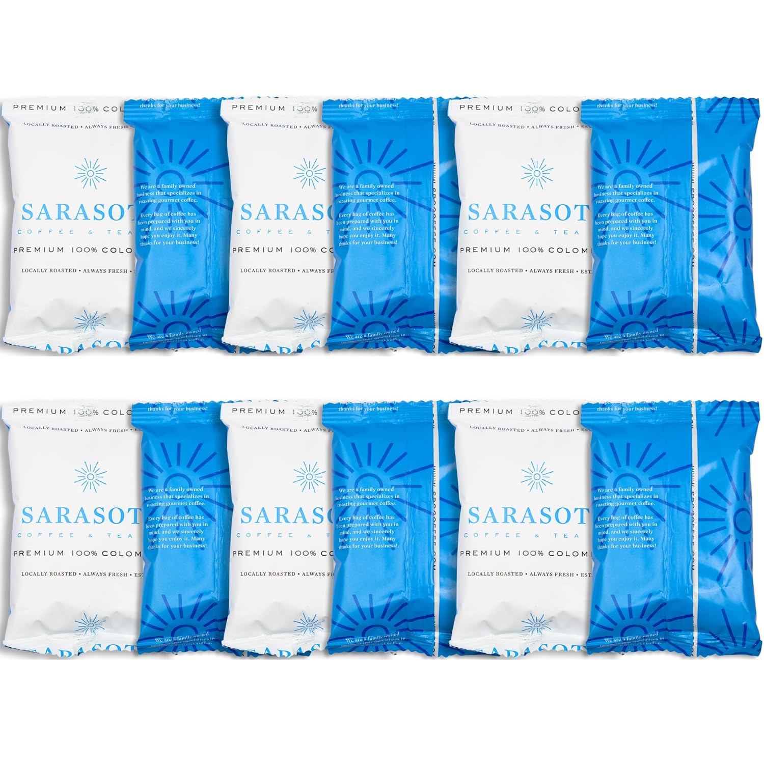 Sarasota Coffee Ground Packets | Gourmet Colombian Medium Roast Ground Coffee Packs | Columbian | Low Acid Mold Free Individual Single Pot Pouches for 12 Cup Coffee Maker | 2 Ounce Bags, 12 Count