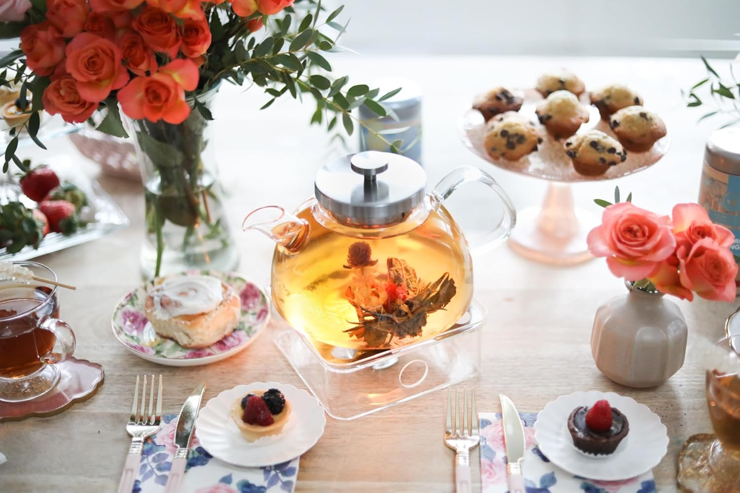 Teabloom Balance Borosilicate Glass Tea Kettle & Teapot – Stovetop-Safe, 40oz – Deep Loose Tea Infuser for Hot & Iced Tea – Elegant & Versatile Design for Tea Connoisseurs