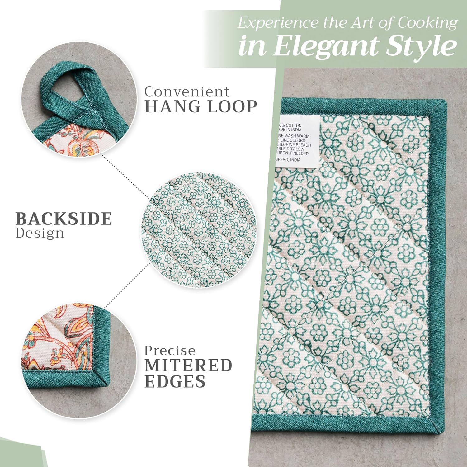 - 100% Quilted cotton: Made from premium quilted cotton, our pot holder ensures safe handling of hot pans or dishes. The soft, durable build provides excellent heat resistance and grip—perfect for everyday cooking and baking needs