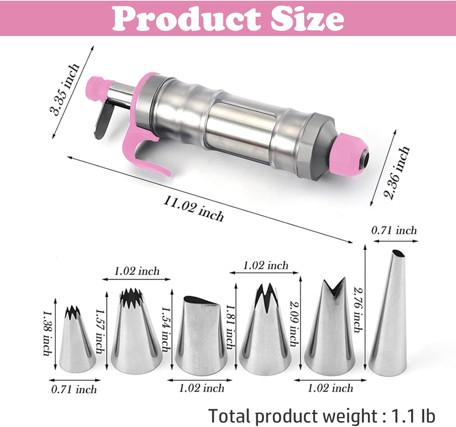 - Cake decorating kit: You will get a cake cream piping syringe and 6 replaceable nozzles.This set will meet your cake, cupcake and biscuit decorating needs