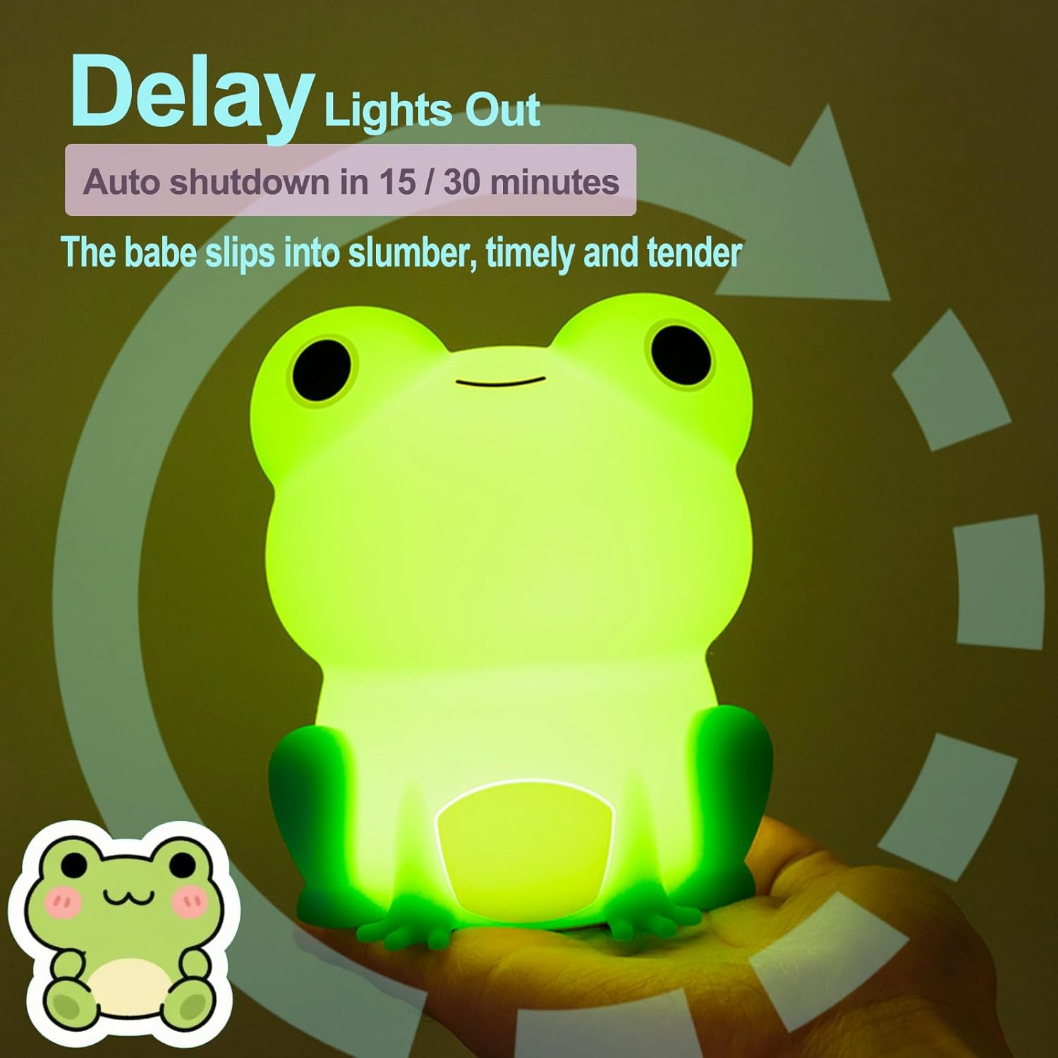 - 🐸🌙 All-Night Companion & Timer Off: The built-in 1200mAh lithium battery supports portable use for up to 17 hours. With its soft light, it serves as a baby guardian throughout the night, aiding in diaper changing and breastfeeding. You can also set a 30-minute auto off without interrupting your sleep. 💤