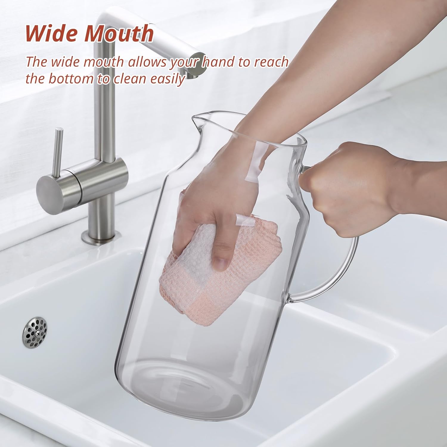 - Wide-Mouth Design for Effortless Cleaning: Both the pitcher and its lid are designed for easy cleaning, and it’s dishwasher safe for added convenience. The extra-wide opening allows you to easily reach the bottom, making hand washing a breeze.