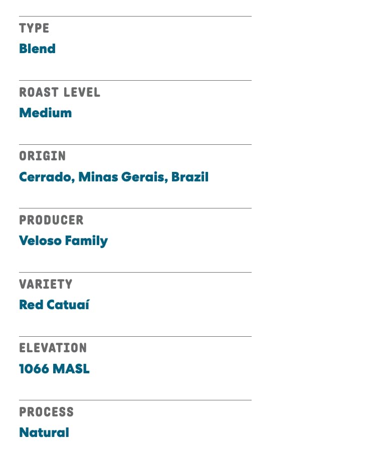 - We select the components for this coffee for their ability to stand up to a more developed roast, without ever tasting over-roasted or smoky. Instead, we pull out classic notes of chocolate, nut, and toffee.