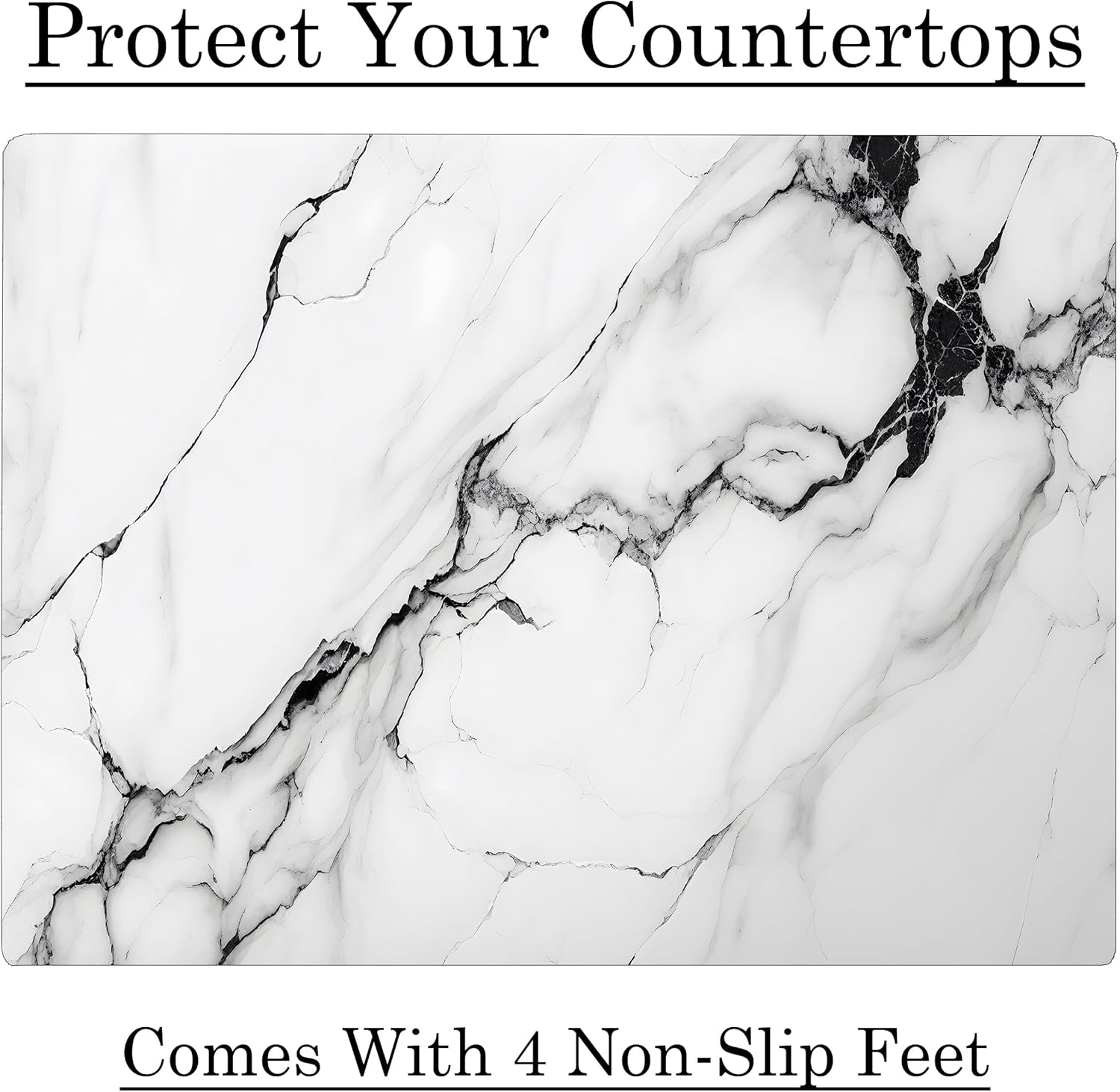 White Black Agate Marble Kitchen Glass Cutting Board Ocean Decorative Gift Marbled Granite Stone Rock Gift For Her Mom Wife (White Black)