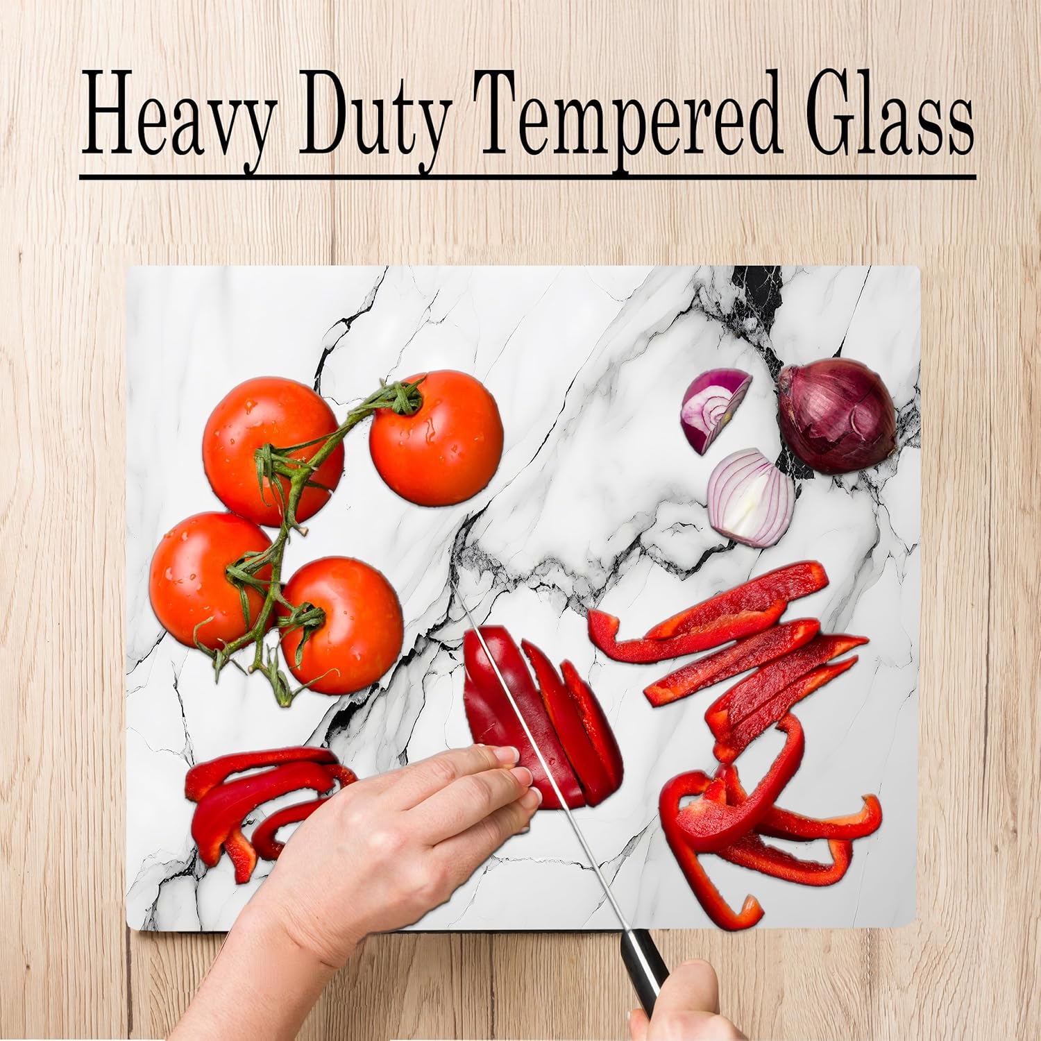 - This Heavy Duty Tempered Glass Kitchen Cutting Board Break Scratch Stain and Odor Proof Perfect For Slicing Dicing Cutting and Chopping Our Unique Marble rock or Quartz Patterns Make a Great Gift