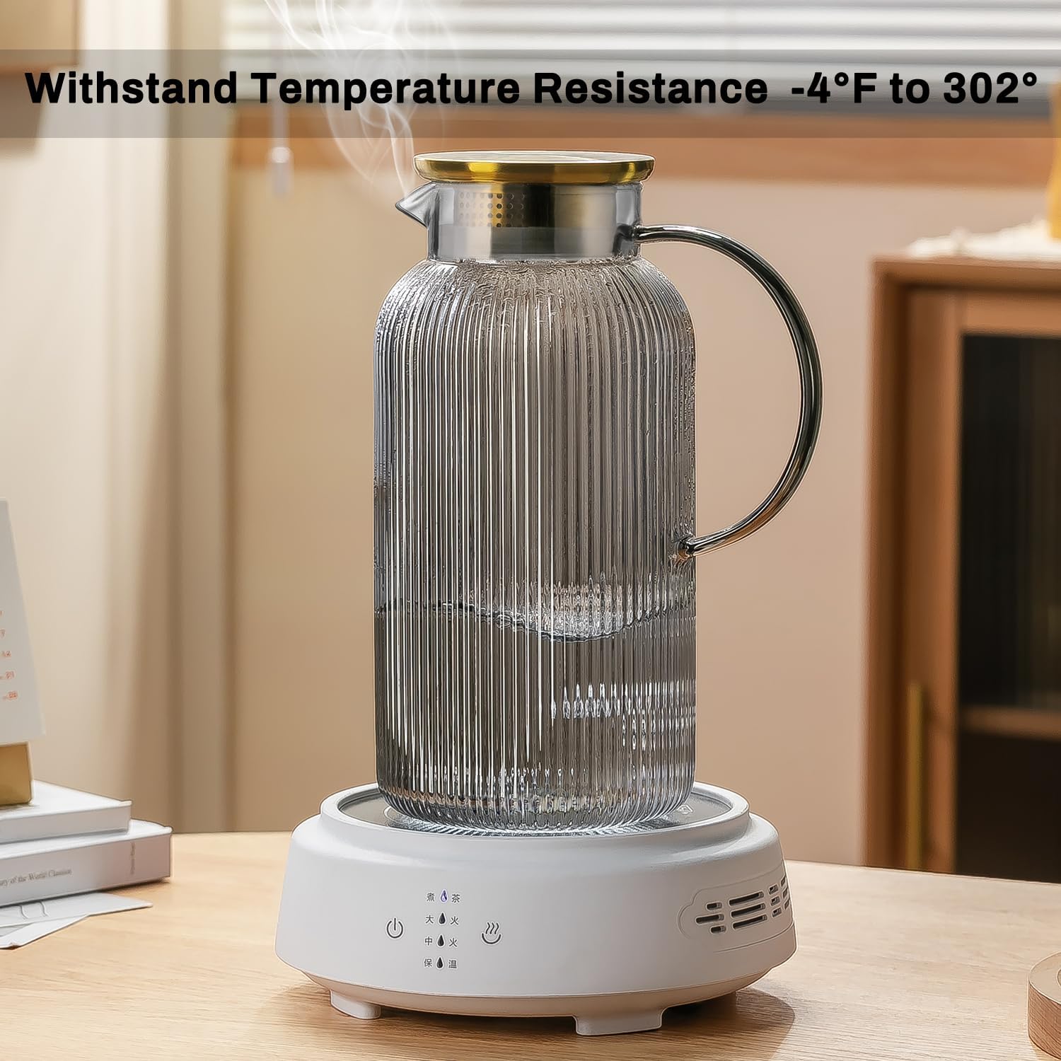 - 【CLASSIC VERTICAL STRIPES DESIGN】Buaic water pitcher is made of heat-resistant borosilicate glass, which can withstand temperatures from -20°C ~150°C/-4°F~302°F. Its lead-free and BPA-free construction makes it a healthier choice in your daily life for iced tea, margaritas, juice, coffee, sangrias, wine, etc. classic vertical stripes design works with traditional or casual place settings. It's not only a pitcher, but also a beautiful decoration on the table.