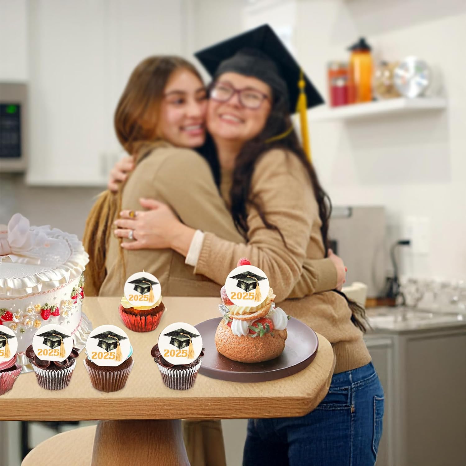 - -Package included: 48Pcs Edible 2025 Grad Cap Cupcake Toppers. These Edible 2025 Grad Cap Cupcake Toppers are so chic and funny that make your graduation 2025 theme party a big hit.