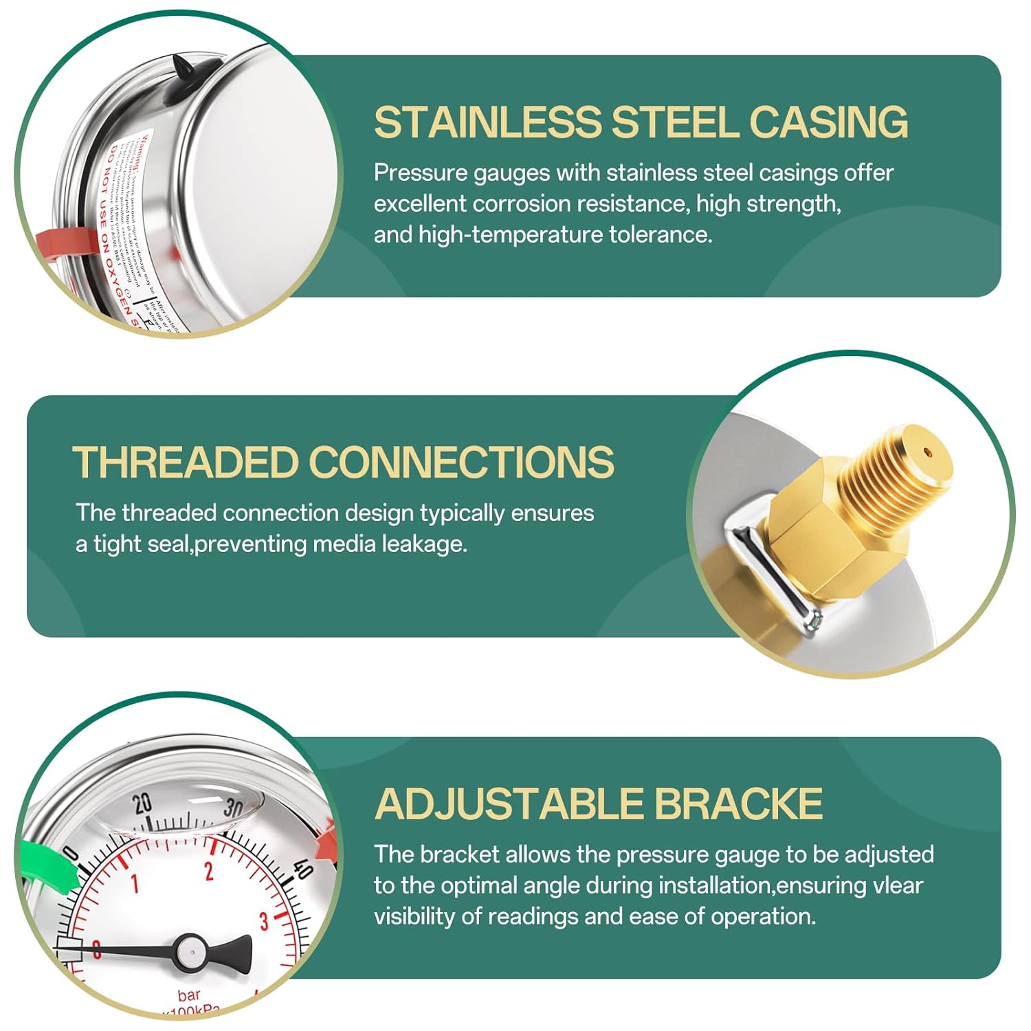 - [PRODUCT NAME] Stainless Steel Liquid Filled Pressure Gauge