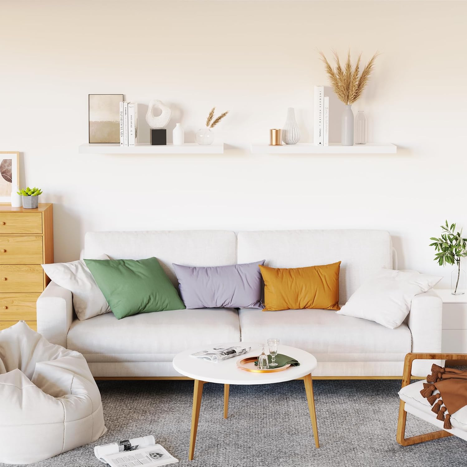 - 【Versatile & Functional】Our white floating shelves for wall can simplify our life which let everything will be in reach. Our wall shelf is a perfect space to display our family pictures, books, memorandums, charming antiques or artwork, spices or jars and fresh green plant. Our floating shelf wood not only give us extra storage but also improve the beauty of our home decor. Our white shelves can be perfectly integrated and decorated in the bathroom, kitchen, living room, bedroom and other place.