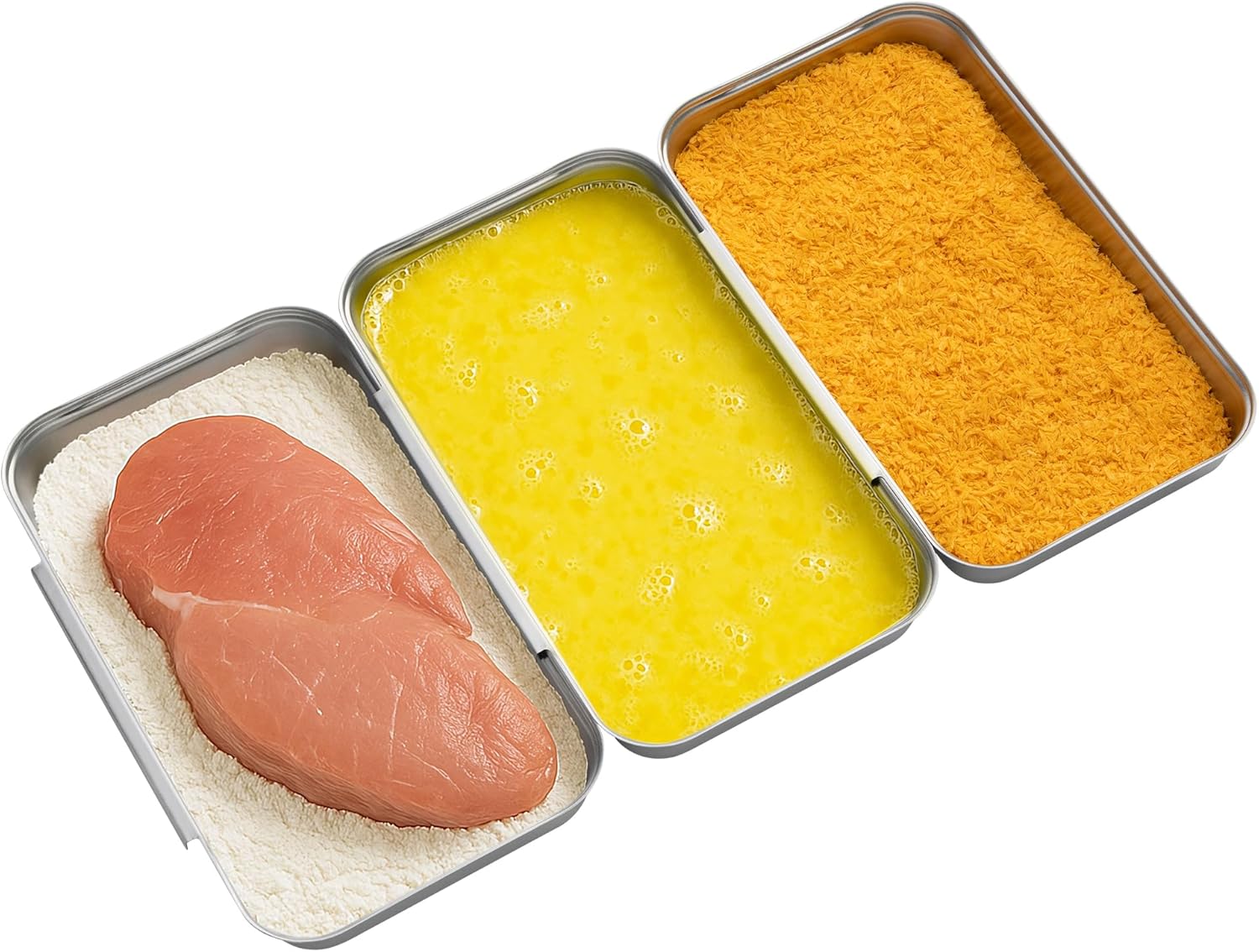 - Interlocking Design: Effortlessly bread chicken and other food with these 3 interlocking baking trays. With one each for flour, eggs, and breadcrumbs, you can prepare delicious meals easily and with less mess.