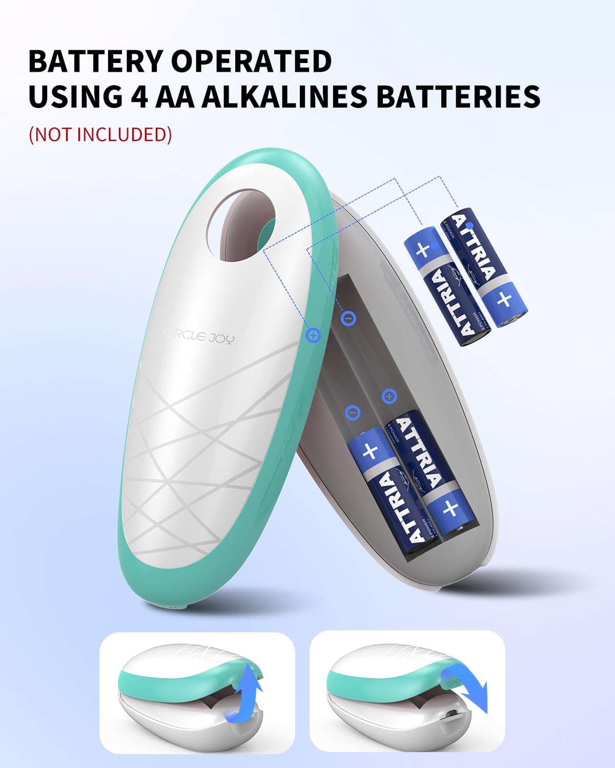 CIRCLE JOY Electric Can Opener, One-Touch Automatic Can Opening with Smooth Edges, Food Safety Handheld Battery-Operated Can Opener for Kitchen and Seniors, Green