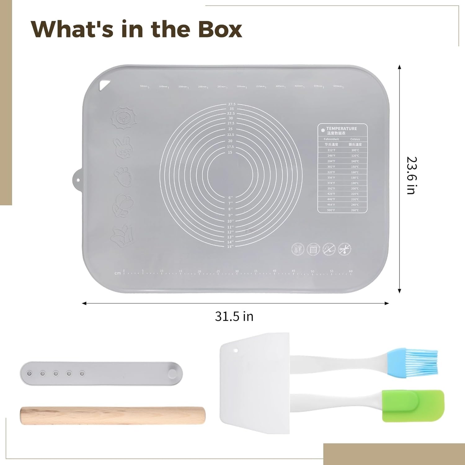 Large Silicone Baking Mat, 31.5×23.6" Non-stick Dough Rolling Mat with Measurements, Extra Thick Kneading Mat with Raised Edges, Heat-resistant Countertop Pastry Mat with Accessories