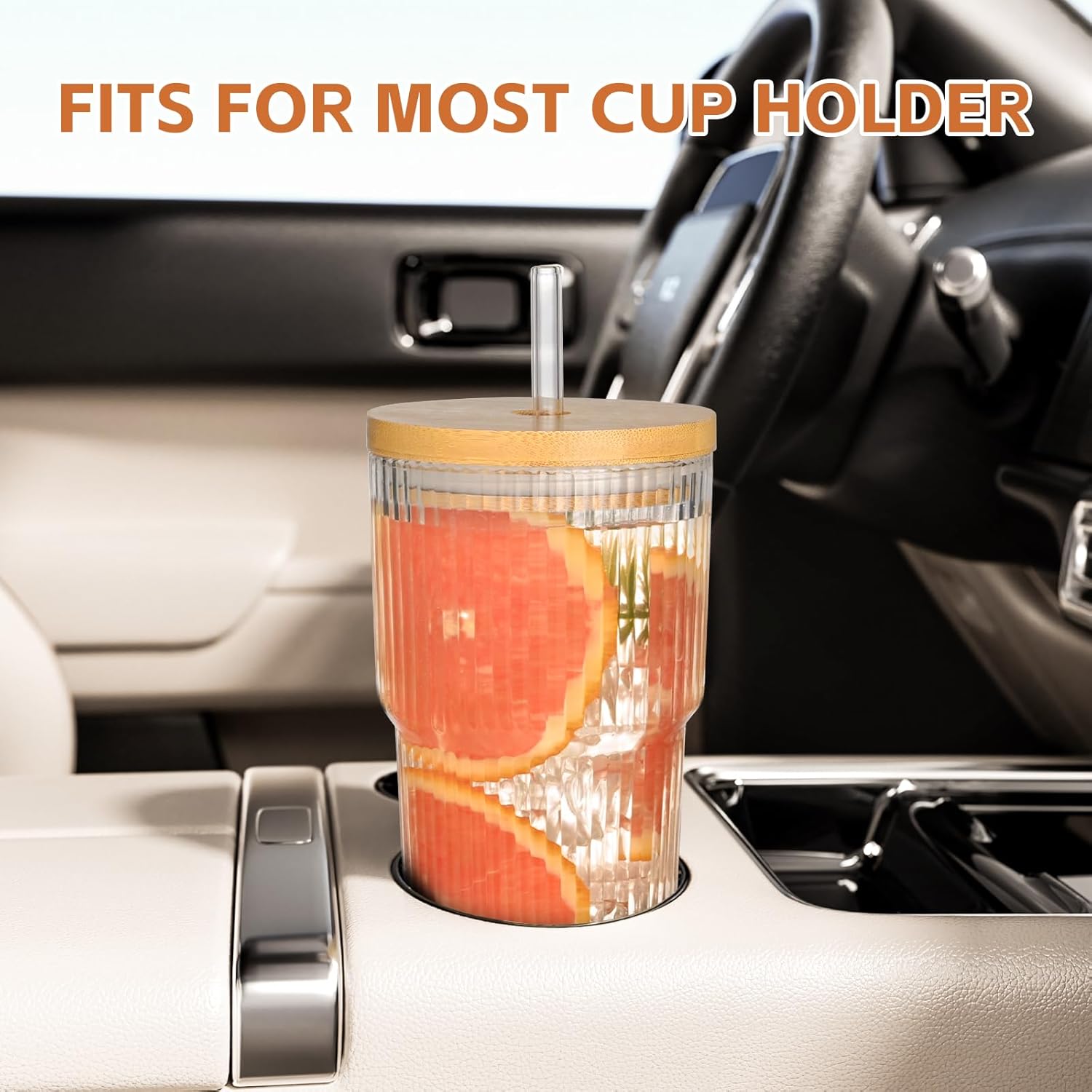 - Premium Ribbed Glass Design: The 20oz Glass Coffee Cup is rafted from thick, high-quality glass, these tumblers are not just elegant with their ribbed texture but also built to last. Set Included:2PCS 20OZ Ribbed Glass Cups with Bamboo Lids, 2PCS reusable glass straws, 2PCS cleaning brushes.