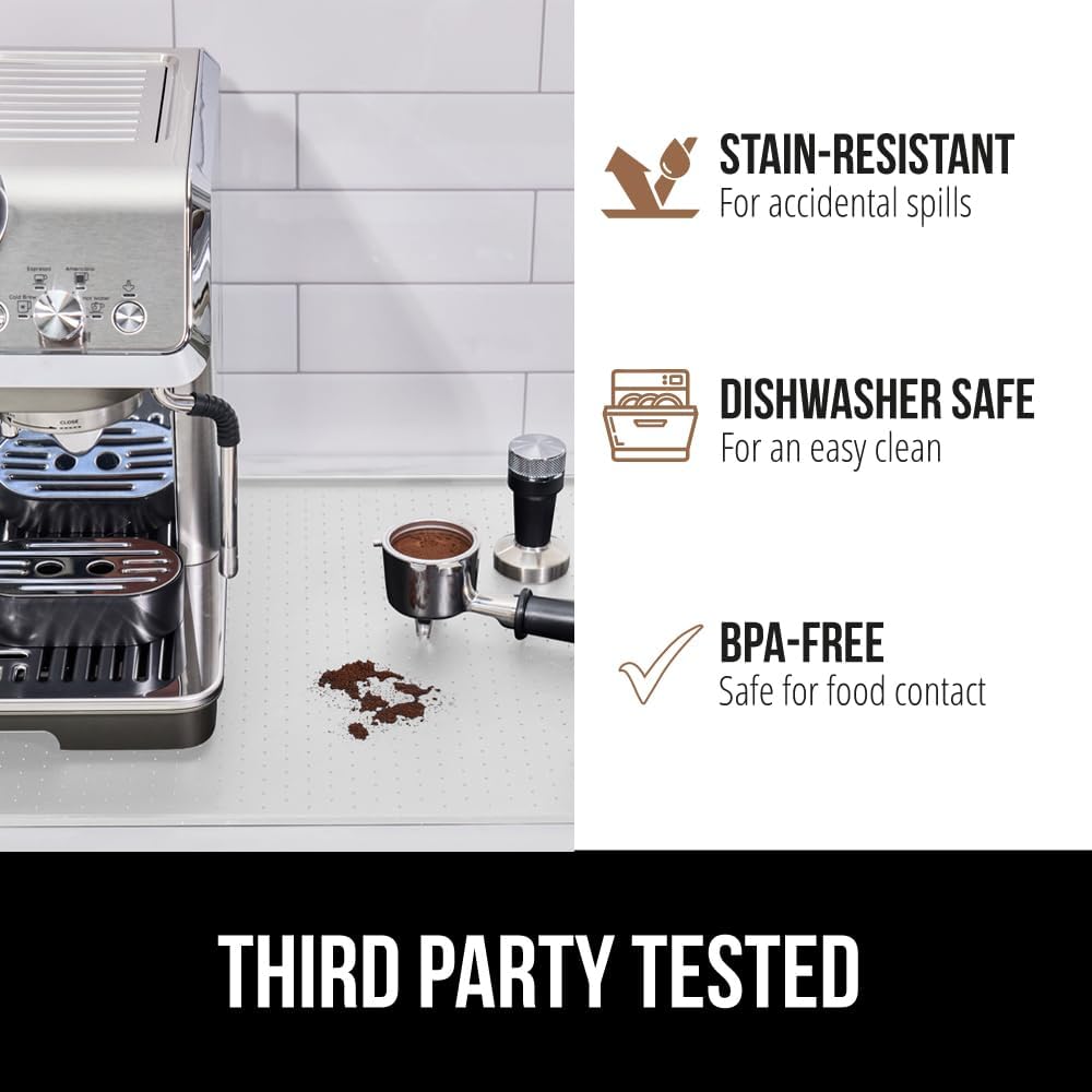 GORILLA GRIP Silicone Coffee Mat, Espresso Drink Bar Station Accessories, Waterproof Heat-Resistant Dish Drying Mats, Stay in Place on Kitchen Counter, Home Kitchen Decor Essentials, 10x14, White