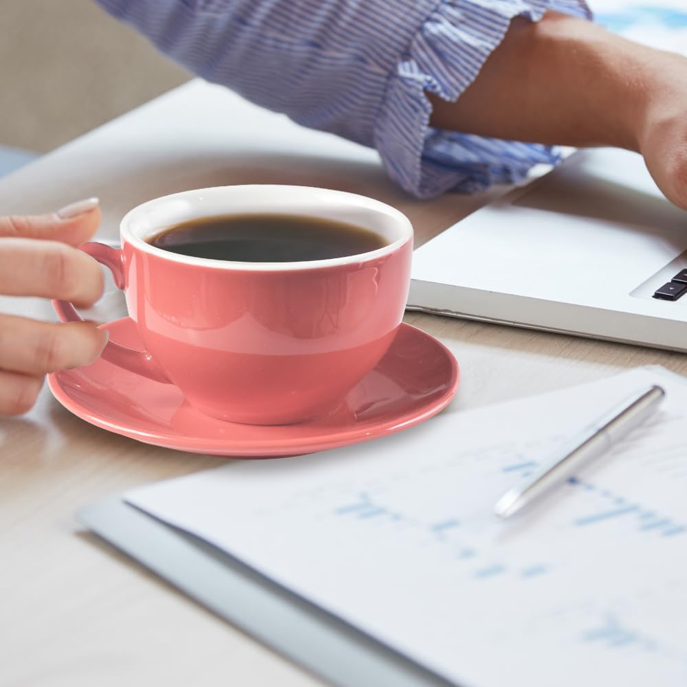 Porcelain Coffee Cup with Saucer 220ml/7.3oz for Cappuccino, Latte, and Tea, Pink