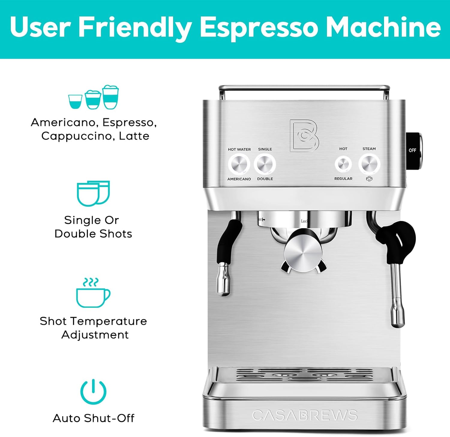 - Brew Your Favorite Coffee at Home: The CASABREWS espresso machine with milk frother lets you create all your favorite espresso drinks, including Americano, latte, cappuccino, and macchiato. Its sleek, durable stainless steel design makes it a stylish addition to any kitchen