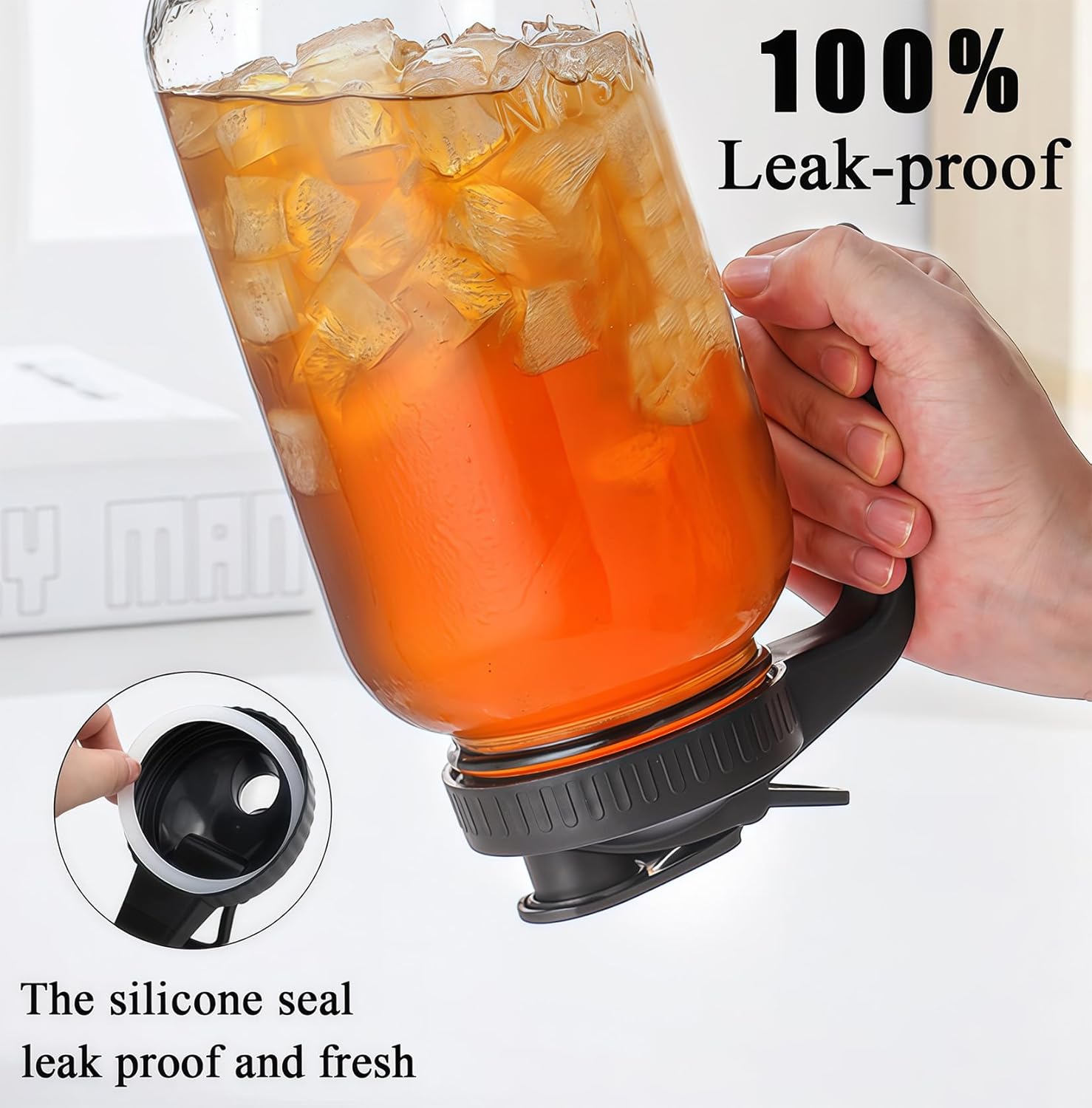 - 【Leakproof & Built to Last】The mason jar pitcher is crafted from premium robust, high-grade thick glass, built to last. Food-graded silicone-sealed lid ensures airtight storage, preventing spills and keeping drinks fresh longer, enhance your beverage-serving experience.