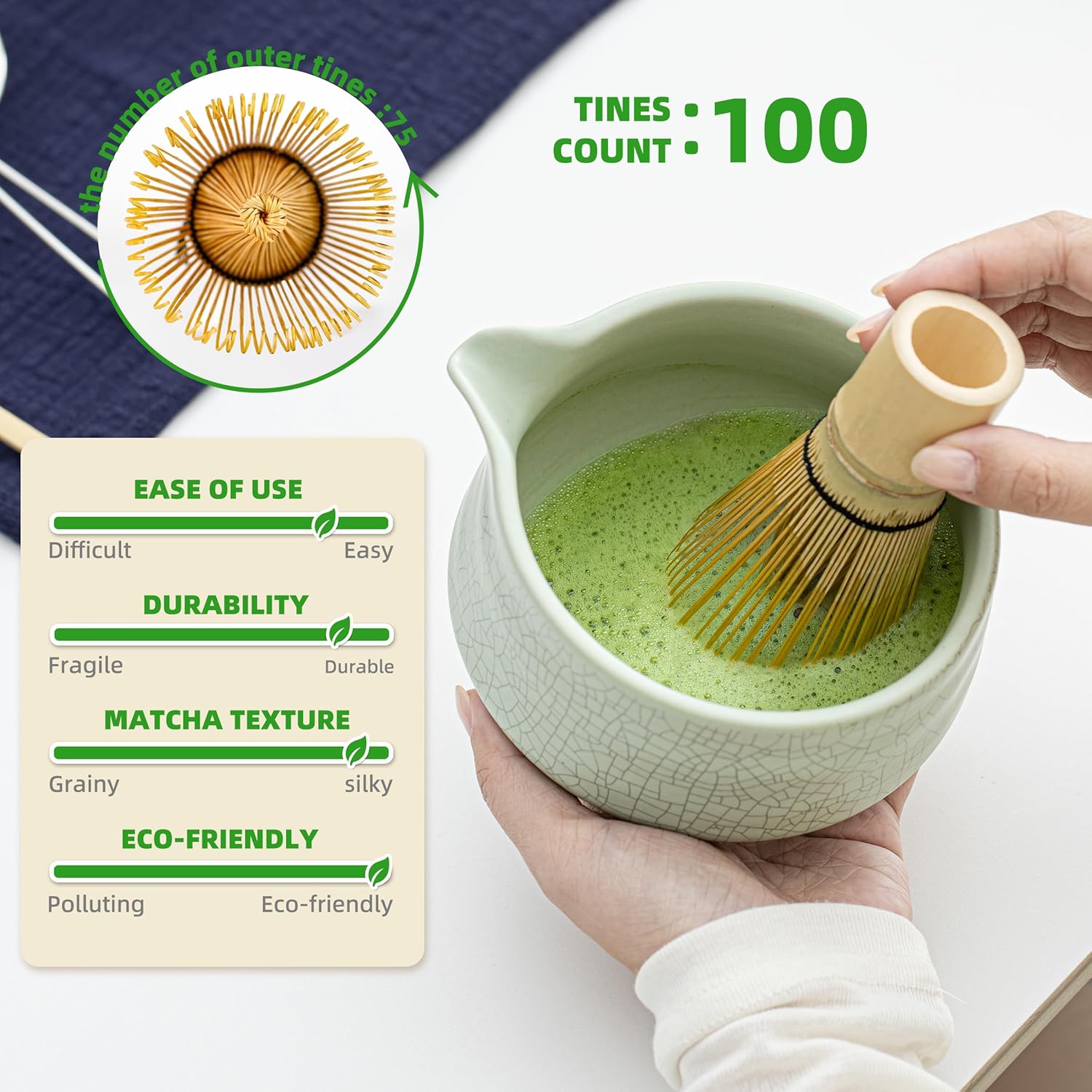 - HIGH SAFETY & QUALITY: Our Handcraft Matcha Whisk, About 100 Fine Tines(百本立),100% Crafted From High Quality Bamboo With A Vegetable Oil Finish To Enhance Its Durability. Additionally, Our Ceramic Bowl Has Lead-free And Mercury-free Test Reports.food-grade And Eco-friendly