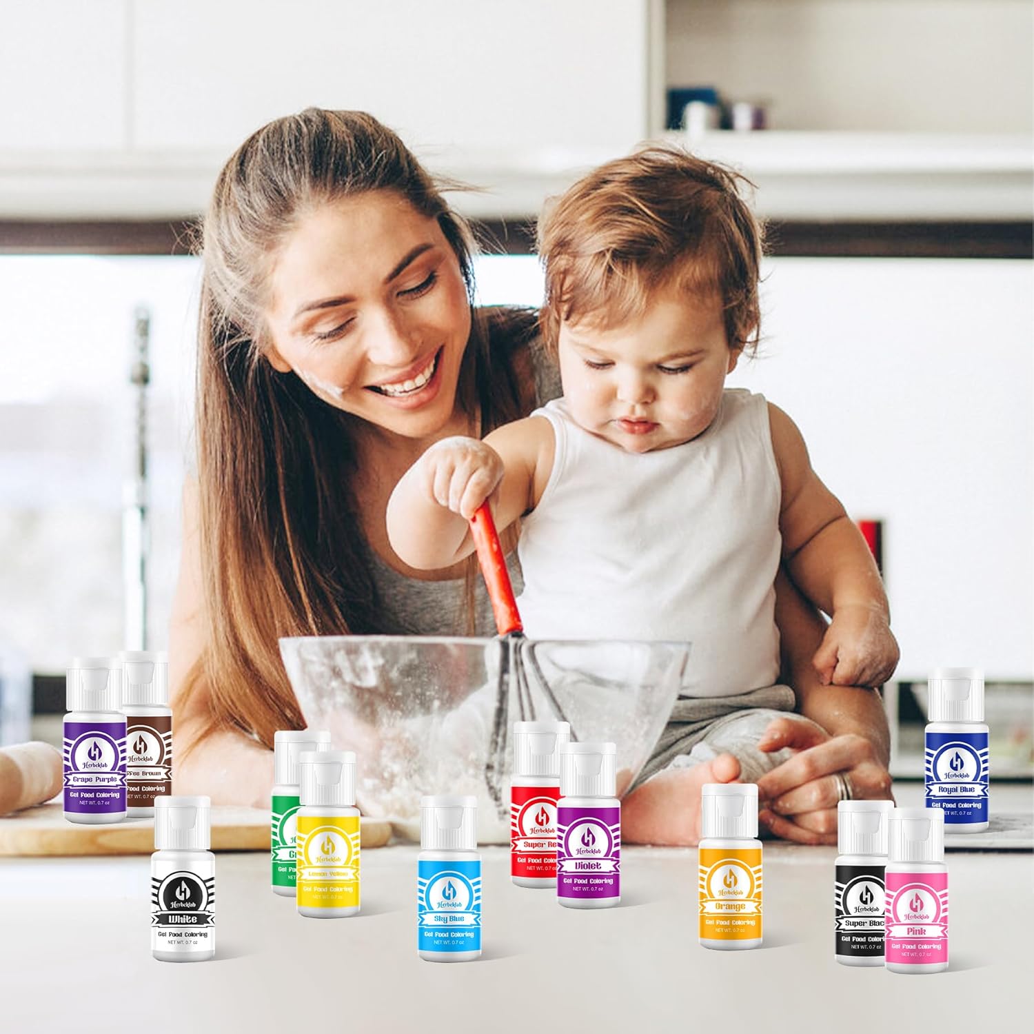 - Wide Application - The gel food coloring is widely used for icing, frosting, buttercream, batter, cakes, cupcakes, and cookies. The food color is great for beginners and professionals decorate desserts on Valentine's Day, Birthday, Christmas; food dye kit also can be used for kids slime, soap, bath bombs and DIY crafts kit, great gift for kids.
