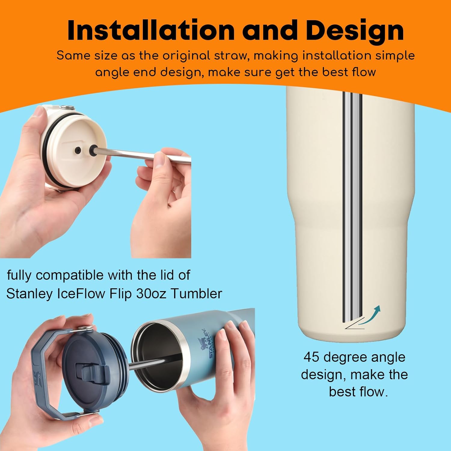 - 【Food Grade Stainless Steel Material】Made of 18/8 primue stainless steel material, our metal straws compatible with stanley tumbler are safe and durable, BPA-free, lead-free, non-toxic, odorless, and environmentally friendly. Say no to plastic!