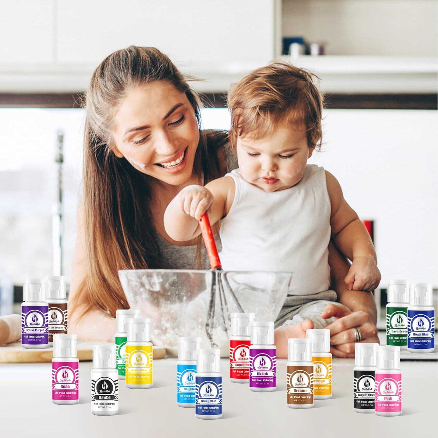 - Vibrant Gel Food Coloring - This highly concentrated gel food coloring set contains 24 brightly colored colors (20 grams per bottle). Each color is unique, and of course you can mix different colors of gel food coloring to create your custom colors for different needs. Icing colors add color to the cake batter, buttercream frosting, or royal icing without changing the consistency