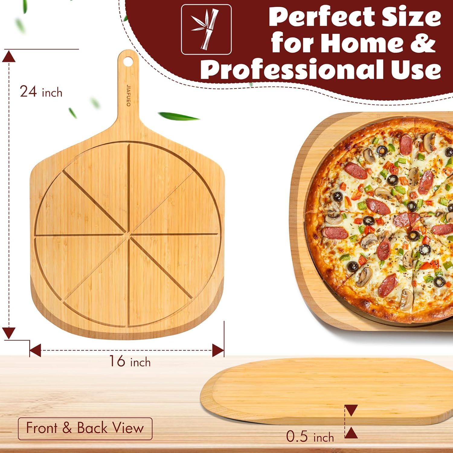 Wood Pizza Peel 16 Inch Pizza Paddle Spatula Serving Board Bamboo Pizza Cutting Boards with 8 Slice Grooves and Handle for Kitchen Oven Pastry Pizzas