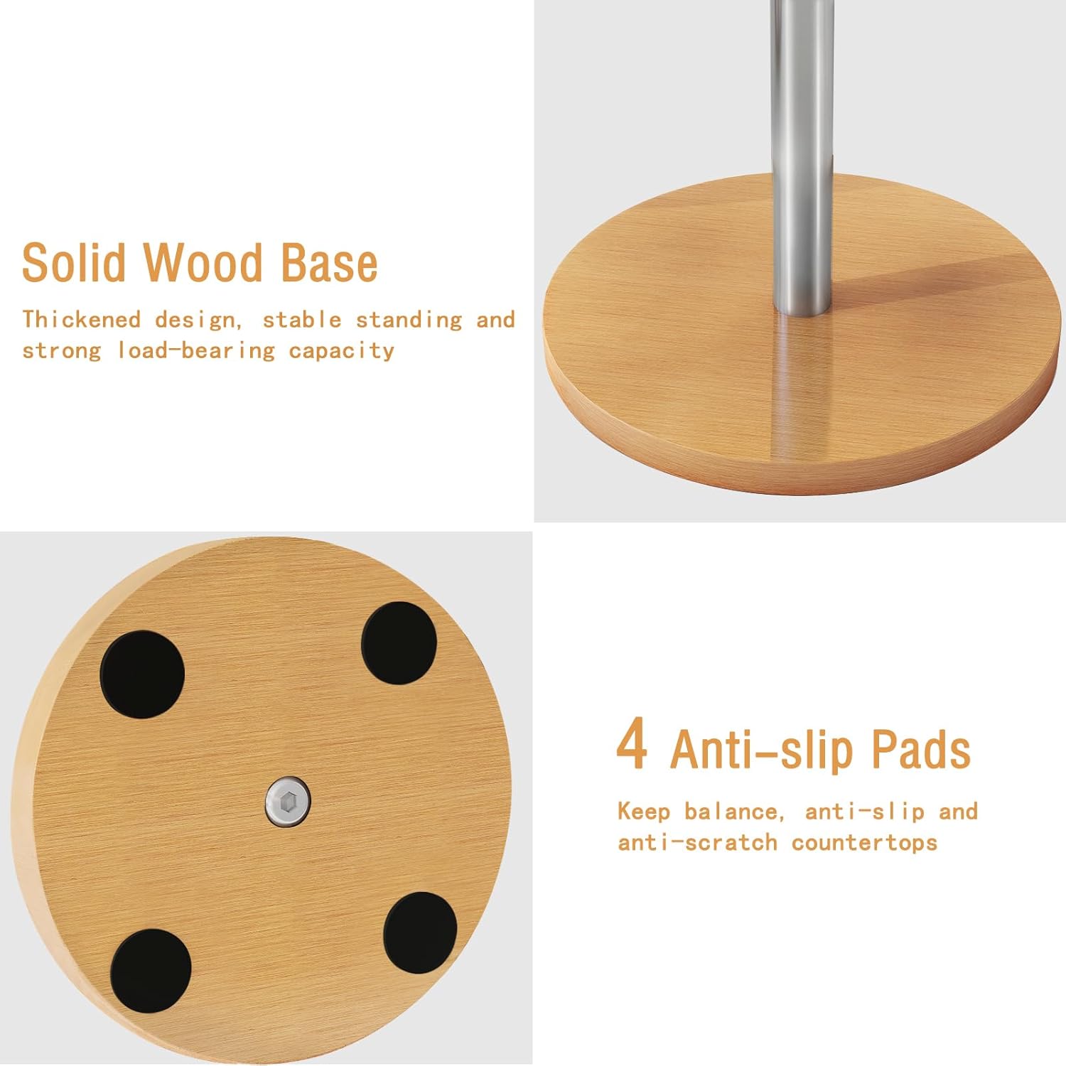 - THICKER AND MORE STABLE BASE: The thicker wooden base ensures the stability of the mug tree, even if the cups are taken out of balance the cup holder will not wobble or tip over. The 4 non-slip pads on the bottom are designed to help achieve good stability and prevent scratches on the countertop