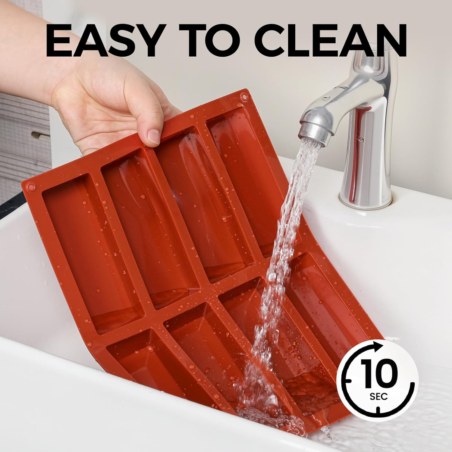 Granola Bar Molds, 8 Cavity Rectangle Granola Bar Silicone Mold for Energy Bars, Cereal, Protein, Brownie, Chocolate & Candy Molds(2 Pcs)