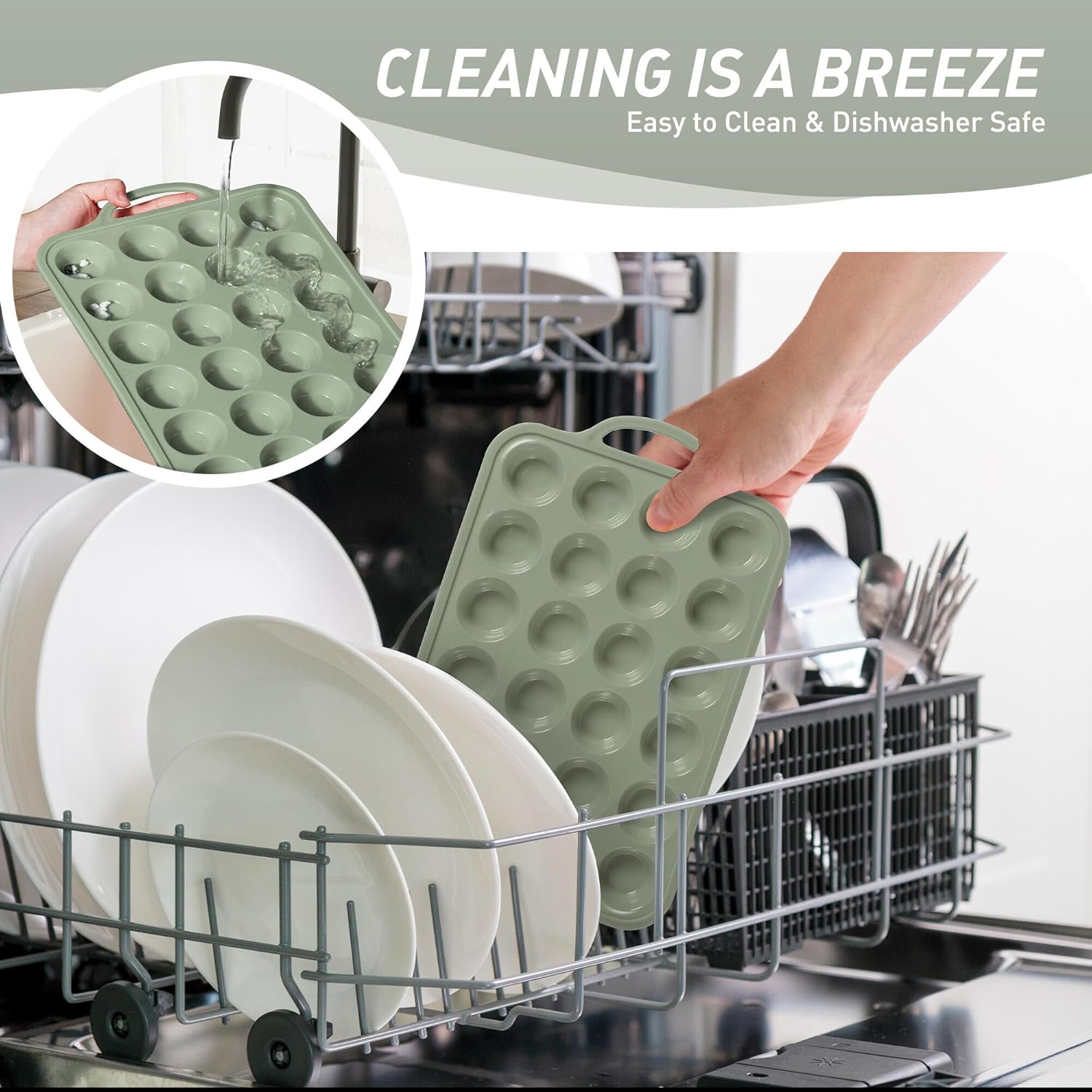 - 【Food Grade Silicone Muffin Tray】Safe for the oven, microwave, dishwasher, fridge, and freezer. With an impressive heat resistance range from -104°F to 446°F, it’s perfect for all your favorite baked goods. Oven-safe handles withstand repeated baking cycles without cracking, unlike cheaper silicone baking cupcake muffin pan with plastic components. Food grade silicone of our muffin pan with anti fouling and anti staining properties, tested over 1000 times and still maintains 99% freshness.