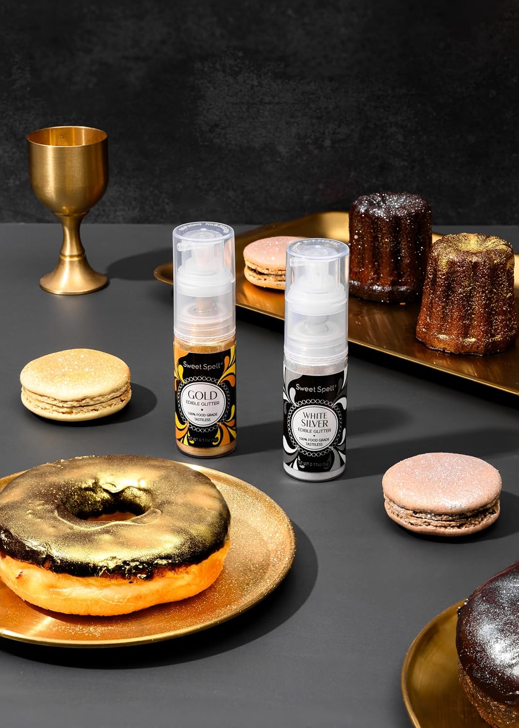Sweet Spell Edible Cake Glitter Spray – Shimmering Magic for Cakes Decorating & Cocktails – 100% Edible, Food-Grade, Vegan, Gluten-Free (White Silver)