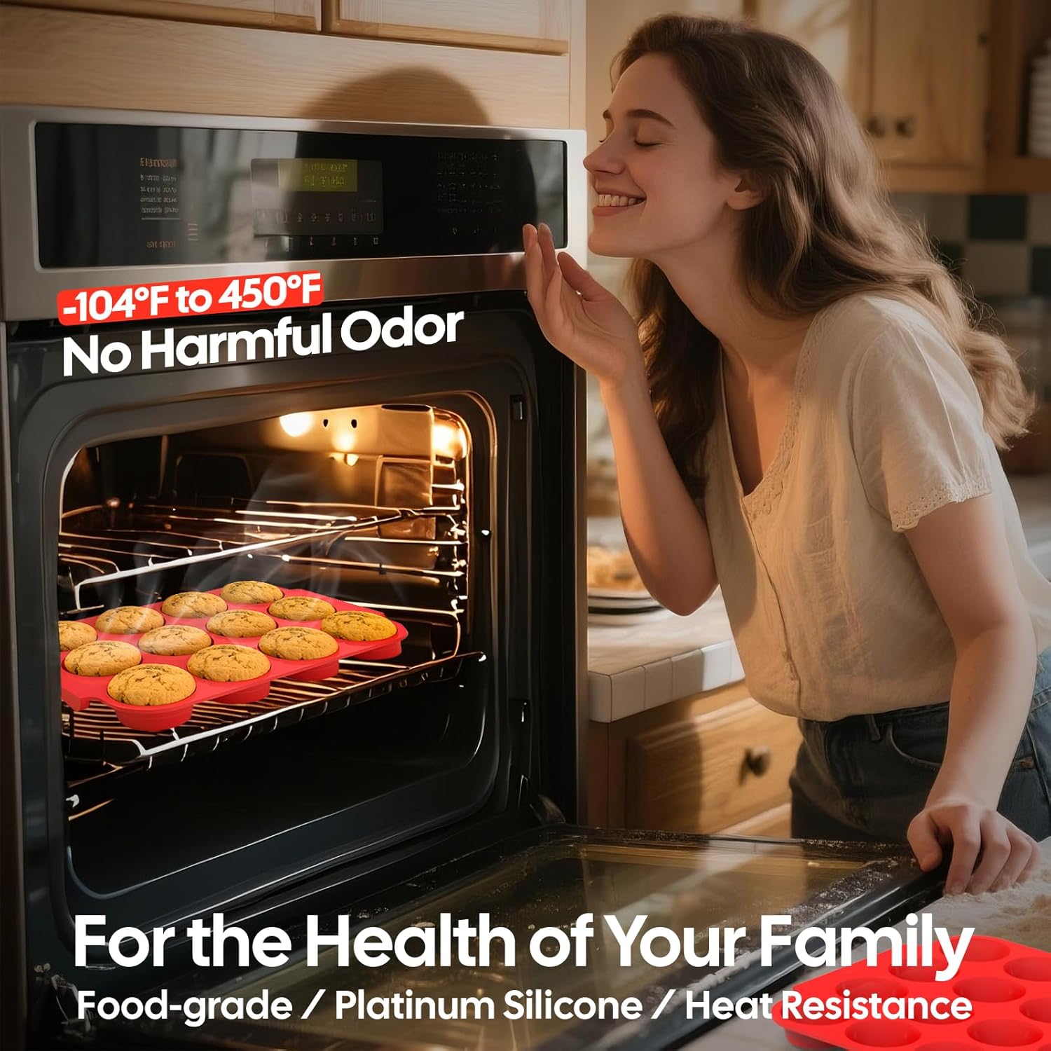 - [Non-Stick & Easy to Clean]: Our Muffin Pan has a non-stick surface for effortless release—simply press the bottom lightly and it pops out. Unlike traditional metal muffin pans, this silicone Muffin Pan won't rust, and cleaning is extremely simple: just rinse with water or place it in the dishwasher, saving you time and effort