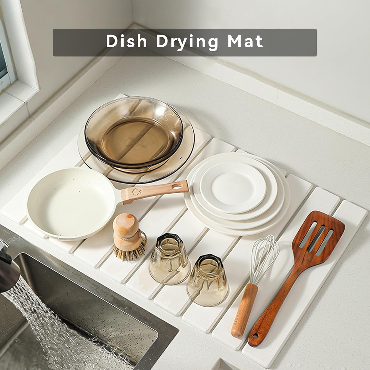 - Large Size & Foldable: The dish mat drying kitchen mat measures 24 x 16 inches and provides plenty of space for your use. When not in use, you can roll or fold the fast dry stone mat to store it in drawers and cabinets, saving you space.