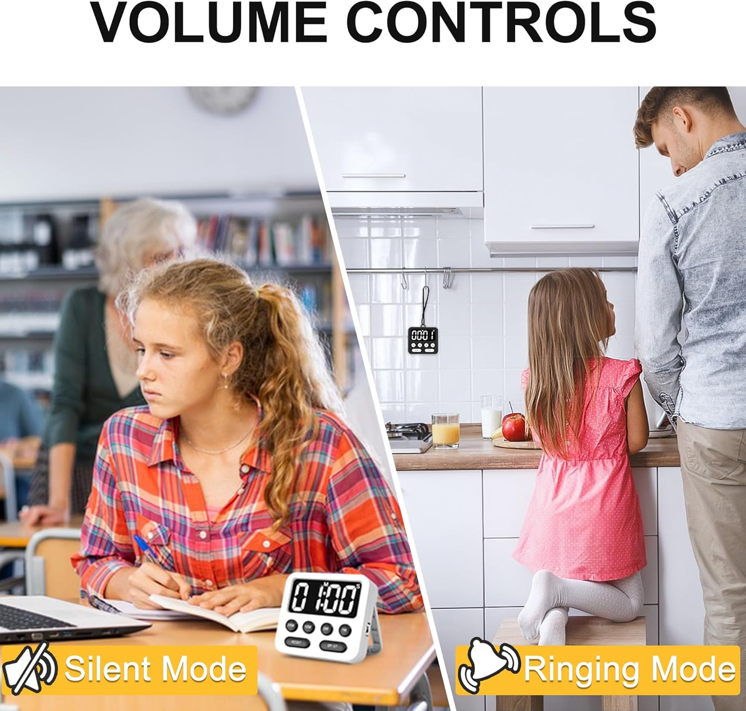 - Adjustable Volume: This classroom timer for kids has two volume modes. In ringing mode, the tone is clear and loud; In mute mode, the timer will remind you by flashing, which can reduce distractions and keep you focused.