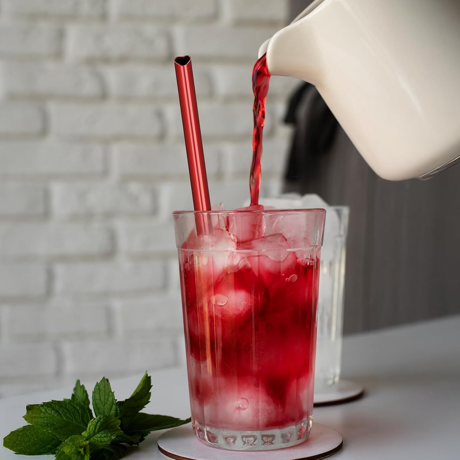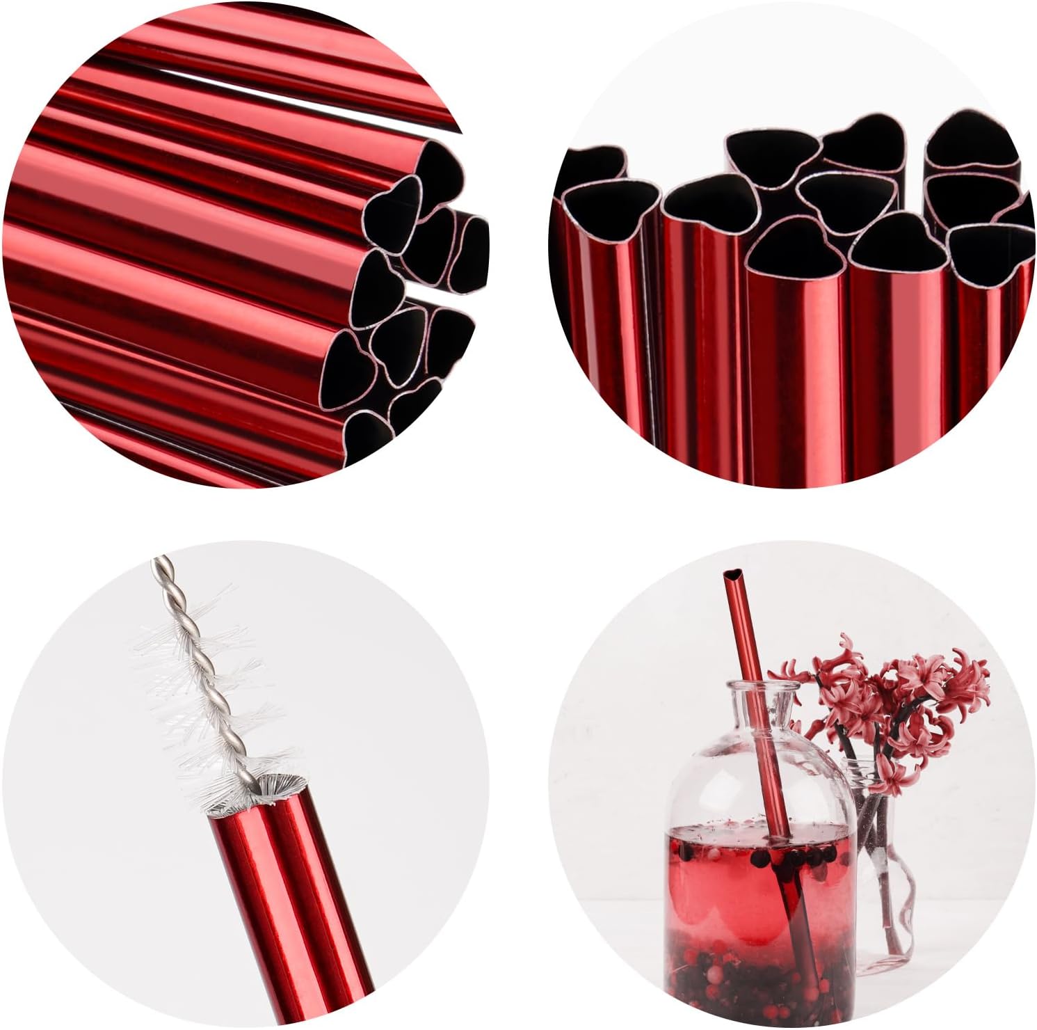 - Bright Red Heart-Shaped Design: This 16-piece reusable stainless steel straw set features a unique heart shape in vibrant red, adding a fun and stylish touch to any drink. Perfect for stirring or sipping coffee, cocktails, smoothies, and more.