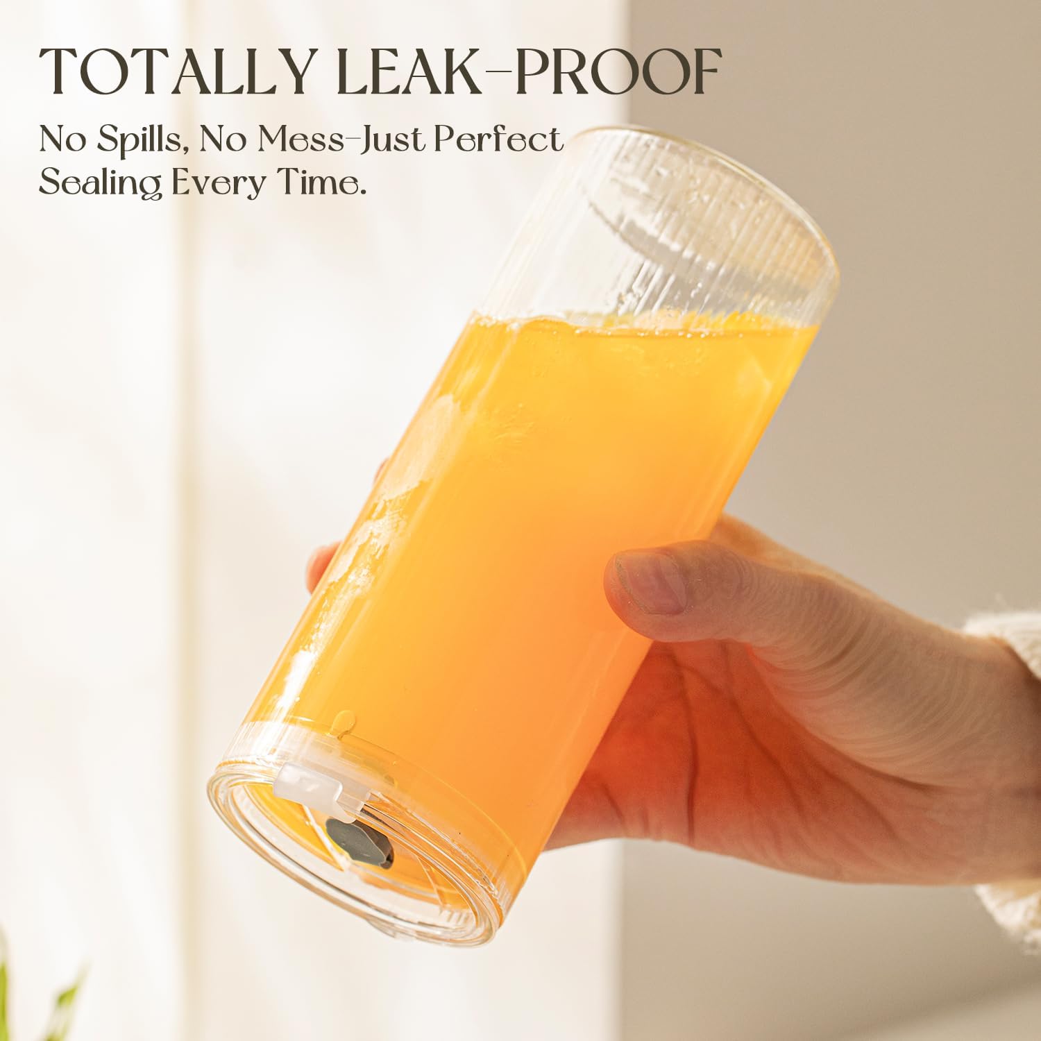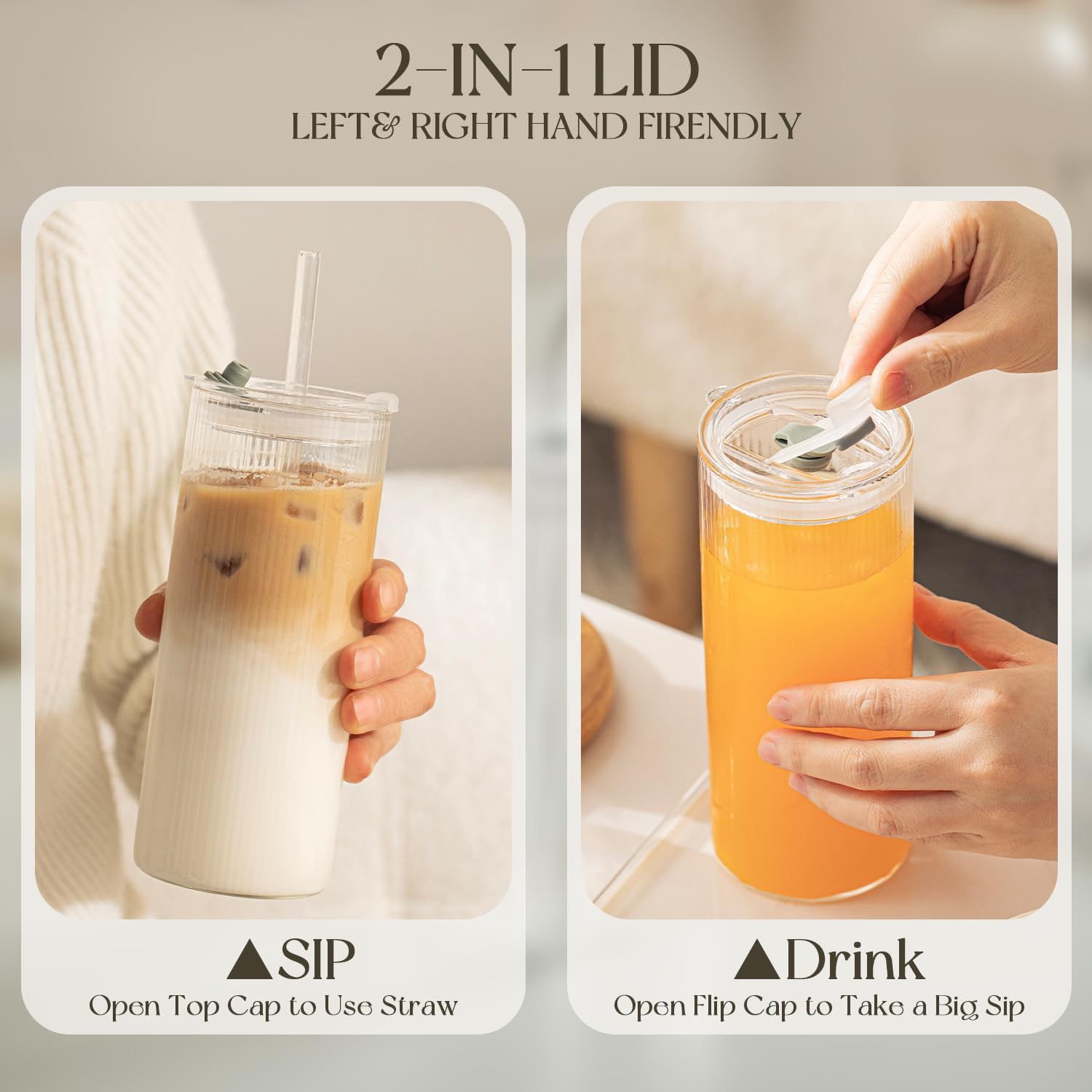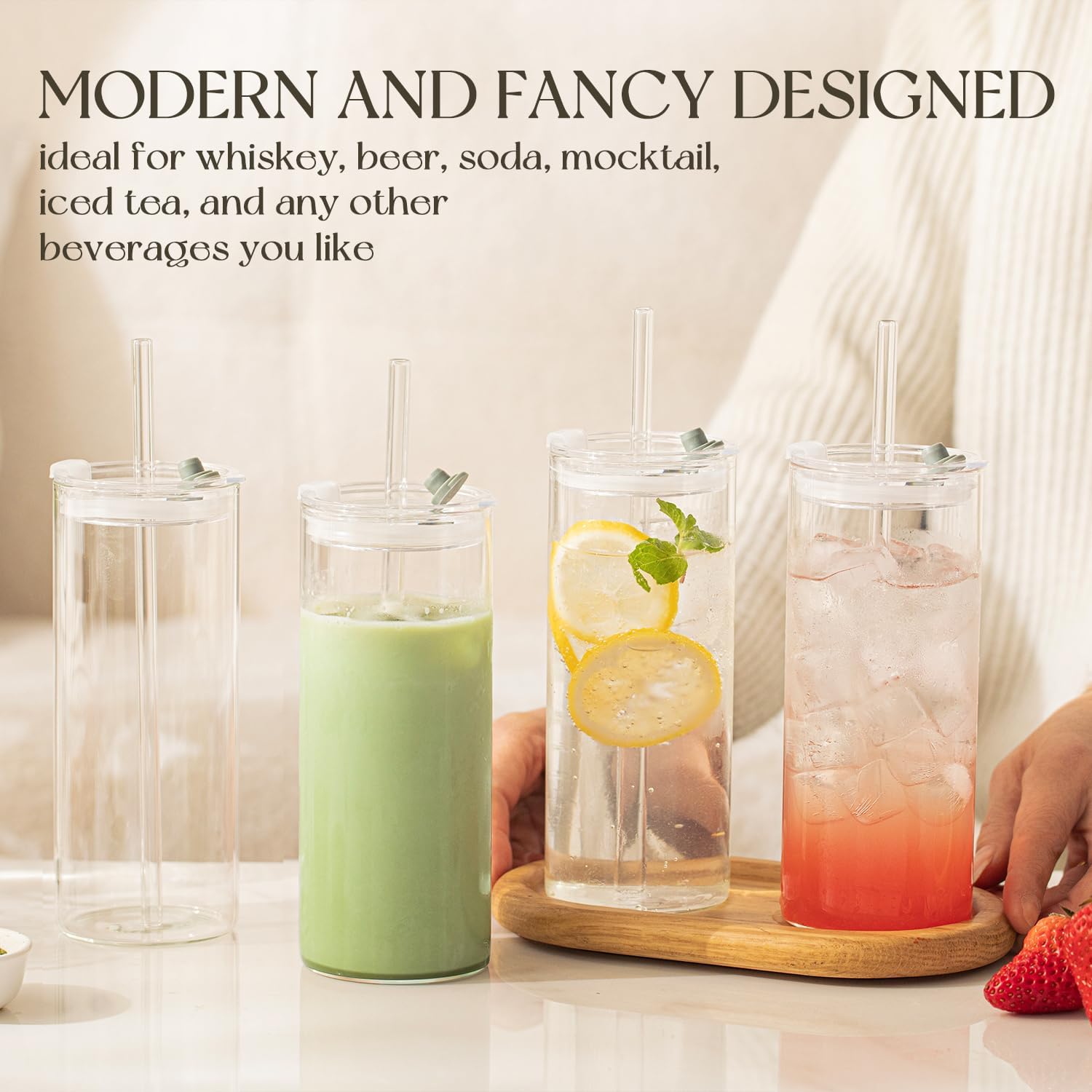 - 【Leakproof Lids for On-the-Go Use】 The silicone-sealed, snap-on lids prevent spills, making these large glass tumblers perfect for travel, picnics, or gym use. Toss them in a bag without worry!