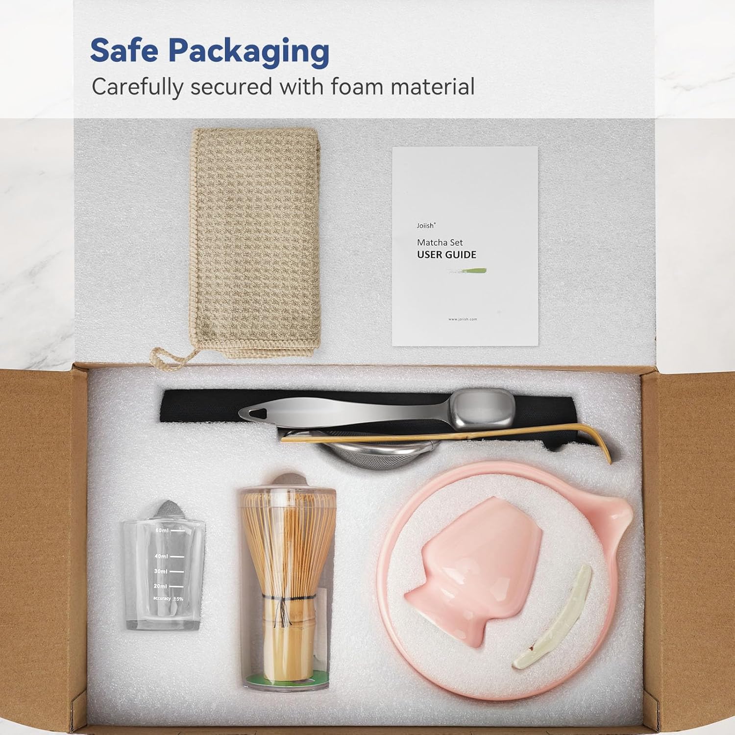 - Exquisite Matcha Set Gift: You will have a totally immersive experience of traditional Japanese tea ceremony from the ceramic tea bowl (CHAWAN), whisk holder, and scoop rest that feature the vibrant pink of matcha, and the exquisite tea whisk (CHASEN), bamboo scoop (CHASHAKU) and tea mat. It'd be a special gift for anyone who enjoys the ever-changing tea art and the refreshing aroma of matcha
