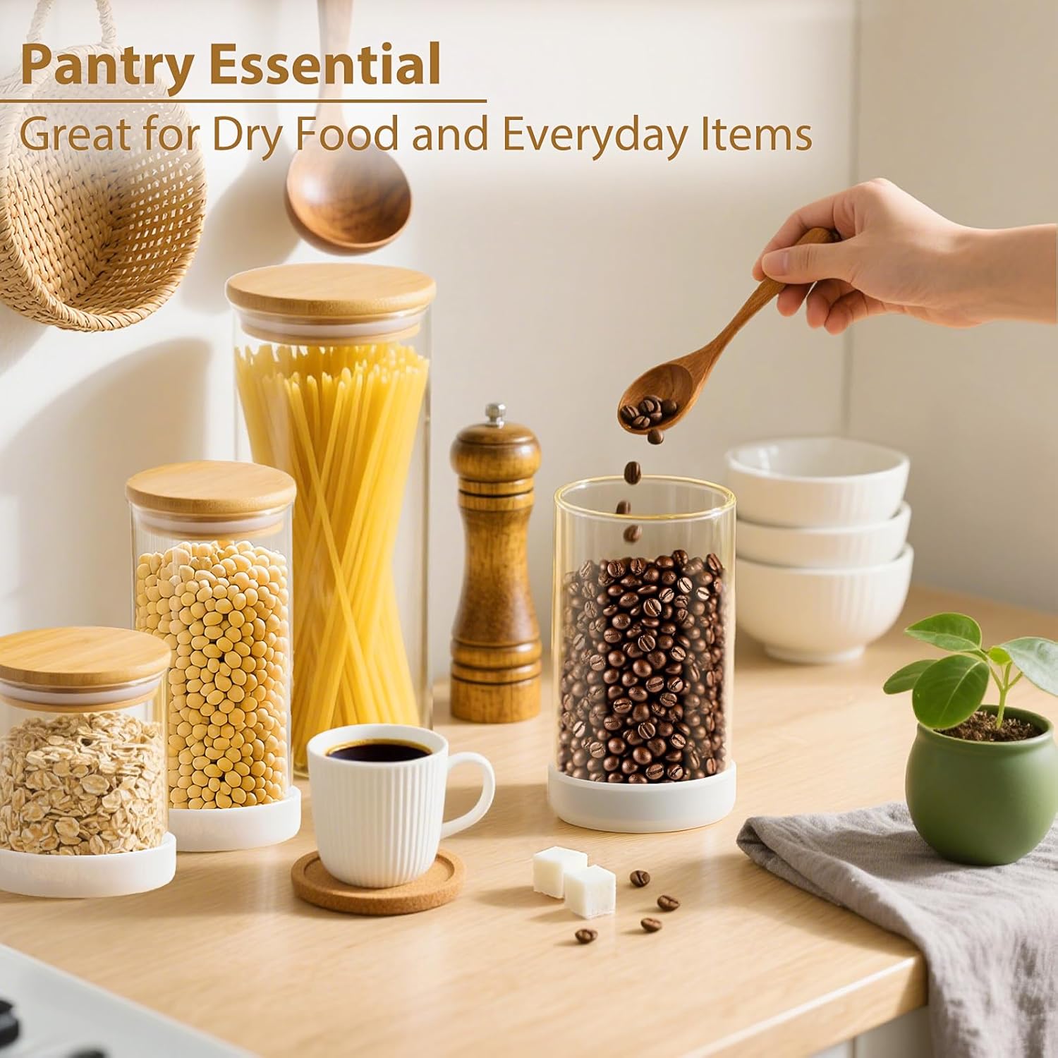 Glass Storage Containers with Bamboo Lids – 7 Pack Airtight Clear Glass Jars in Mixed Sizes (17oz/25oz/34oz/53oz/73oz) for Pantry Organization, Kitchen Dry Food, Coffee, Flour, Pasta & Snacks