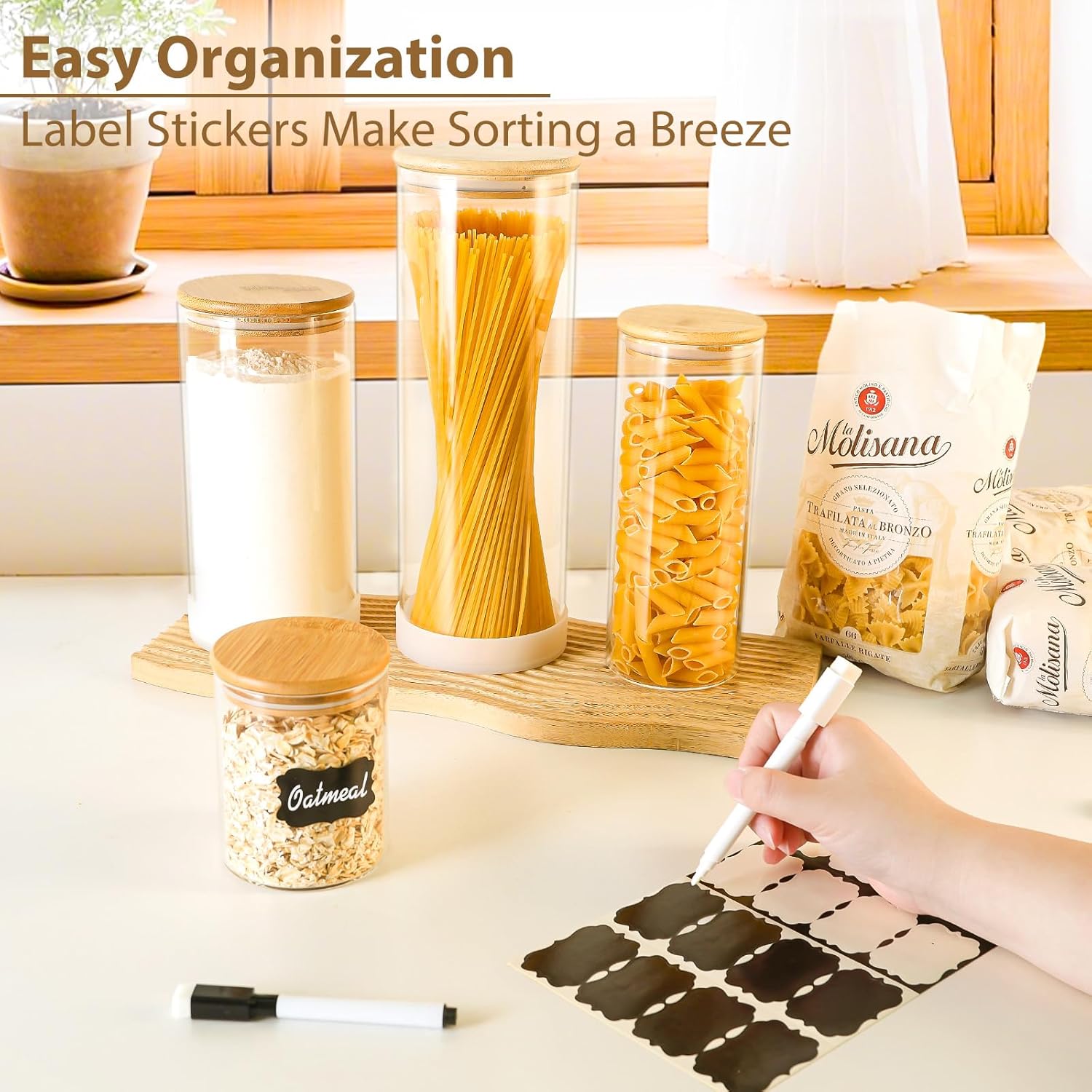 - Versatile Pantry Solution – Ideal for organizing bulk pantry goods like flour, pasta, coffee beans, rice, and snacks. These jars are reusable, eco-friendly, and easy to clean – a stylish and sustainable choice for any kitchen.