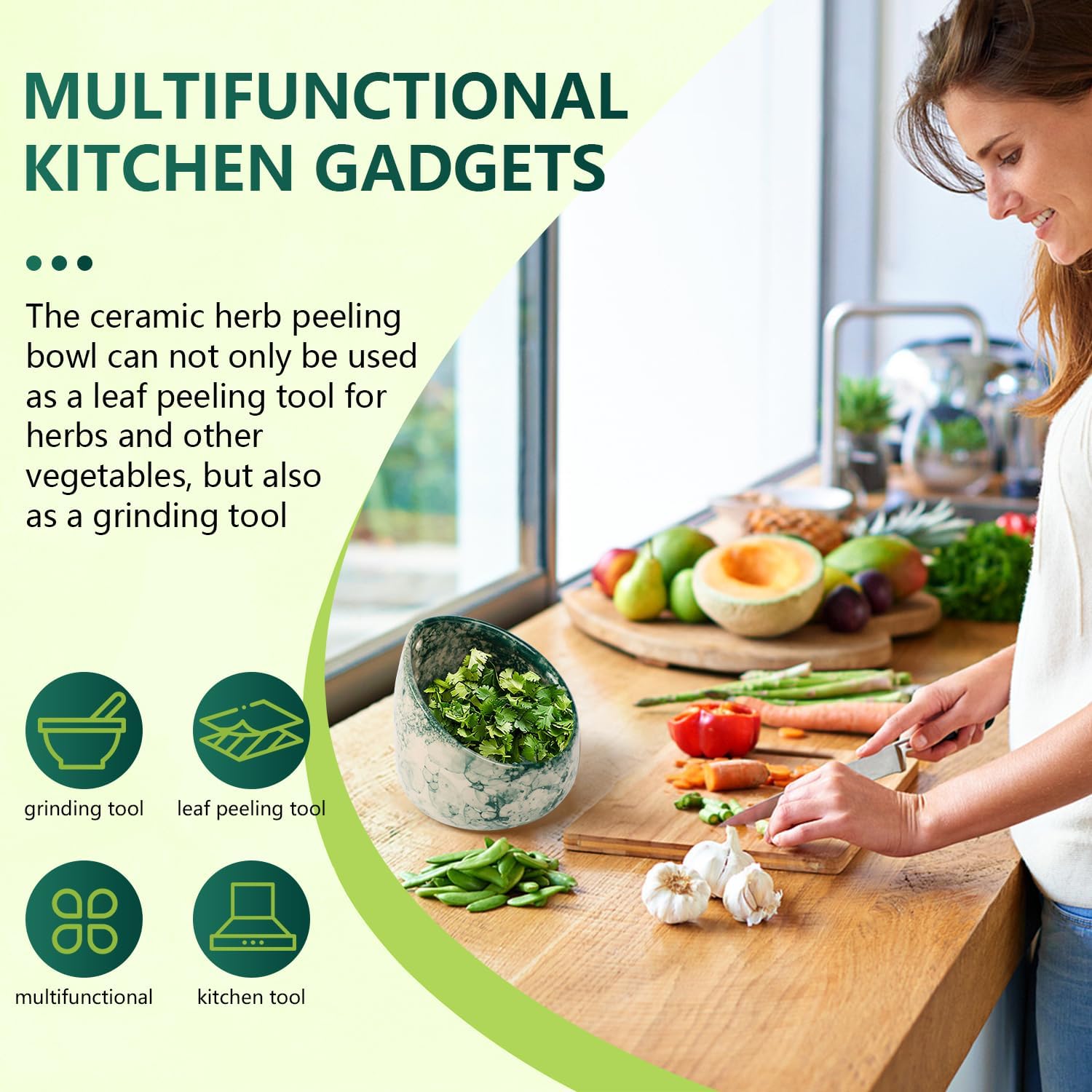 - 【Widely Used】 The ceramic herb peeling tool is designed for easy use, and its unique appearance design makes it easier to use by hand. Whether you are a kitchen novice or a professional chef, this ceramic herb peeling bowl can bring you convenient cooking