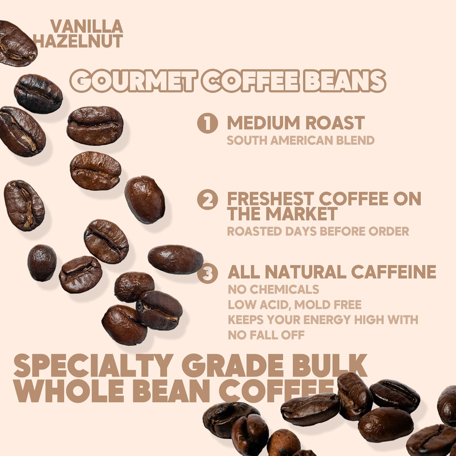 - Irresistible Vanilla Hazelnut Flavor – Experience the perfect harmony of smooth vanilla and rich, toasted hazelnut in every sip. These whole Arabica beans deliver a naturally sweet, creamy taste with a buttery hazelnut finish, creating a truly indulgent coffee experience.