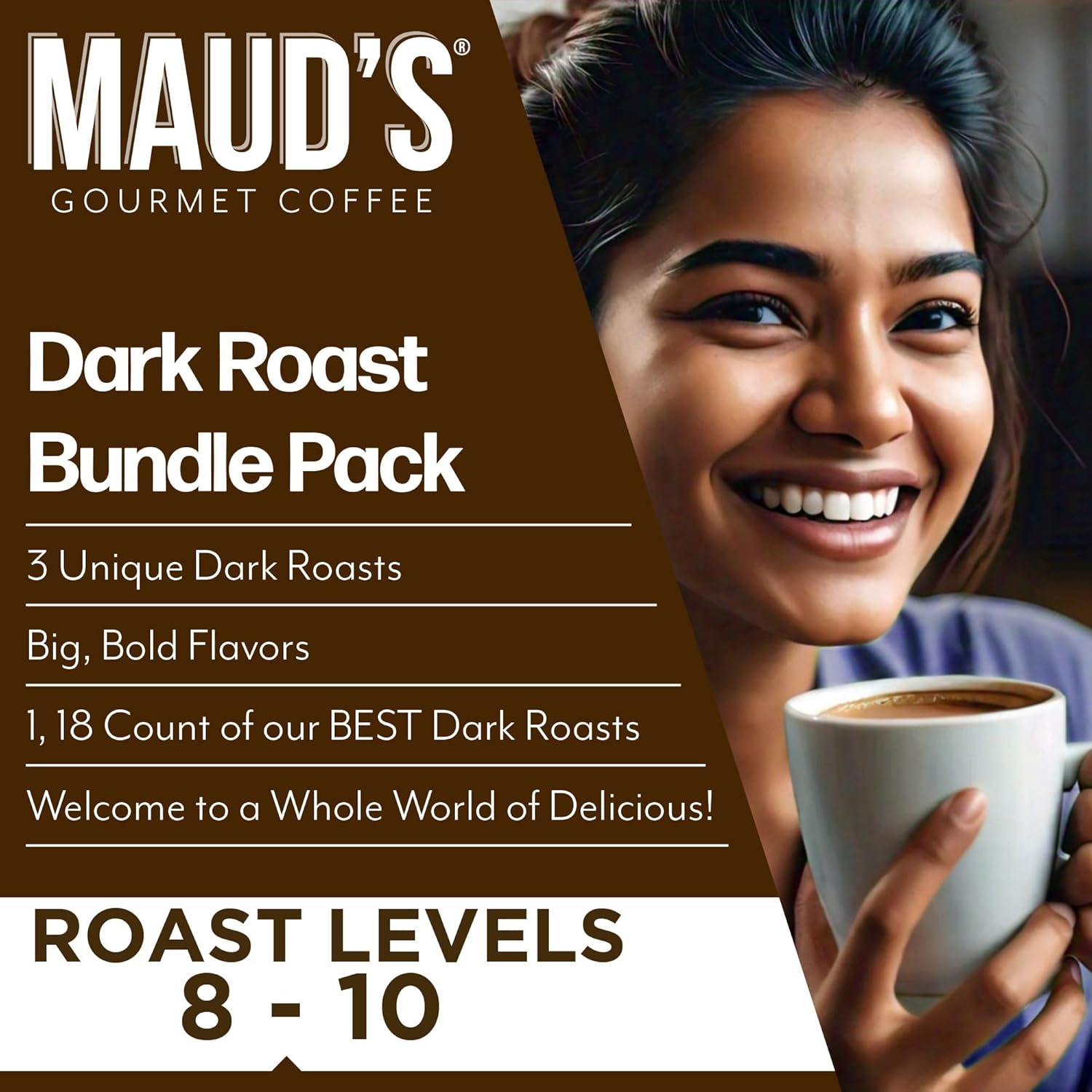 - [Bold & Flavorful Dark Roast Coffee Bundle]: Maud's "Espress-O Yourself", "French Roast From The Coast", and "Tall Dark & Handsome" come together in this rich and robust collection. This expertly roasted bundle features bold burnt undertones, a smoky bite with minimal acidity, and a full-bodied experience with a sweet aroma and toasted nut notes. Enjoy a perfectly roasted, flavorful dark coffee experience in every sip!