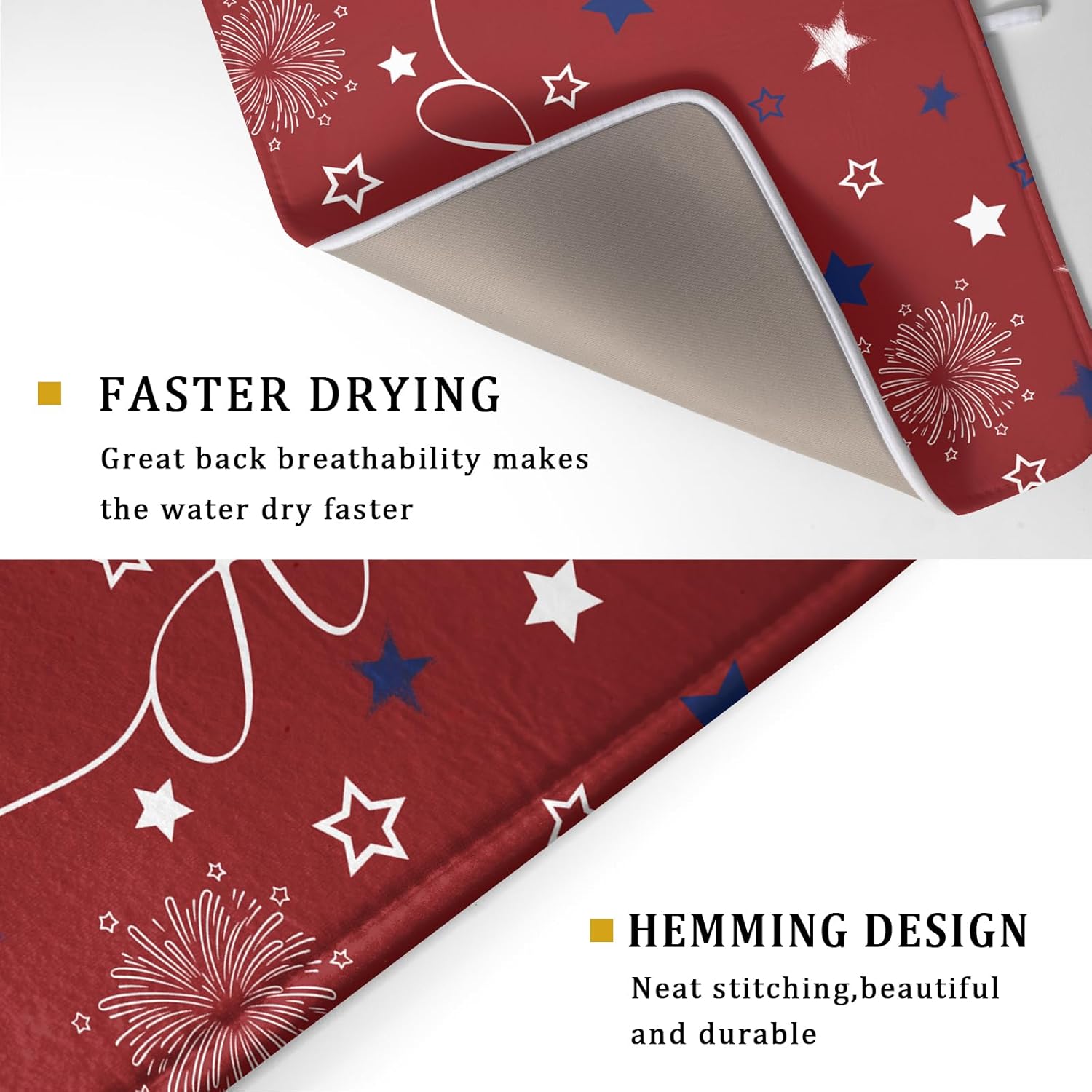 Giwawa 4th of July Dish Drying Mat 18"x24" Patriotic Usa Stars America Firework Dish Drainer Mats Independece Day Absorbent Microfiber Dish Drying Pad for Kitchen Countertop Large Decor