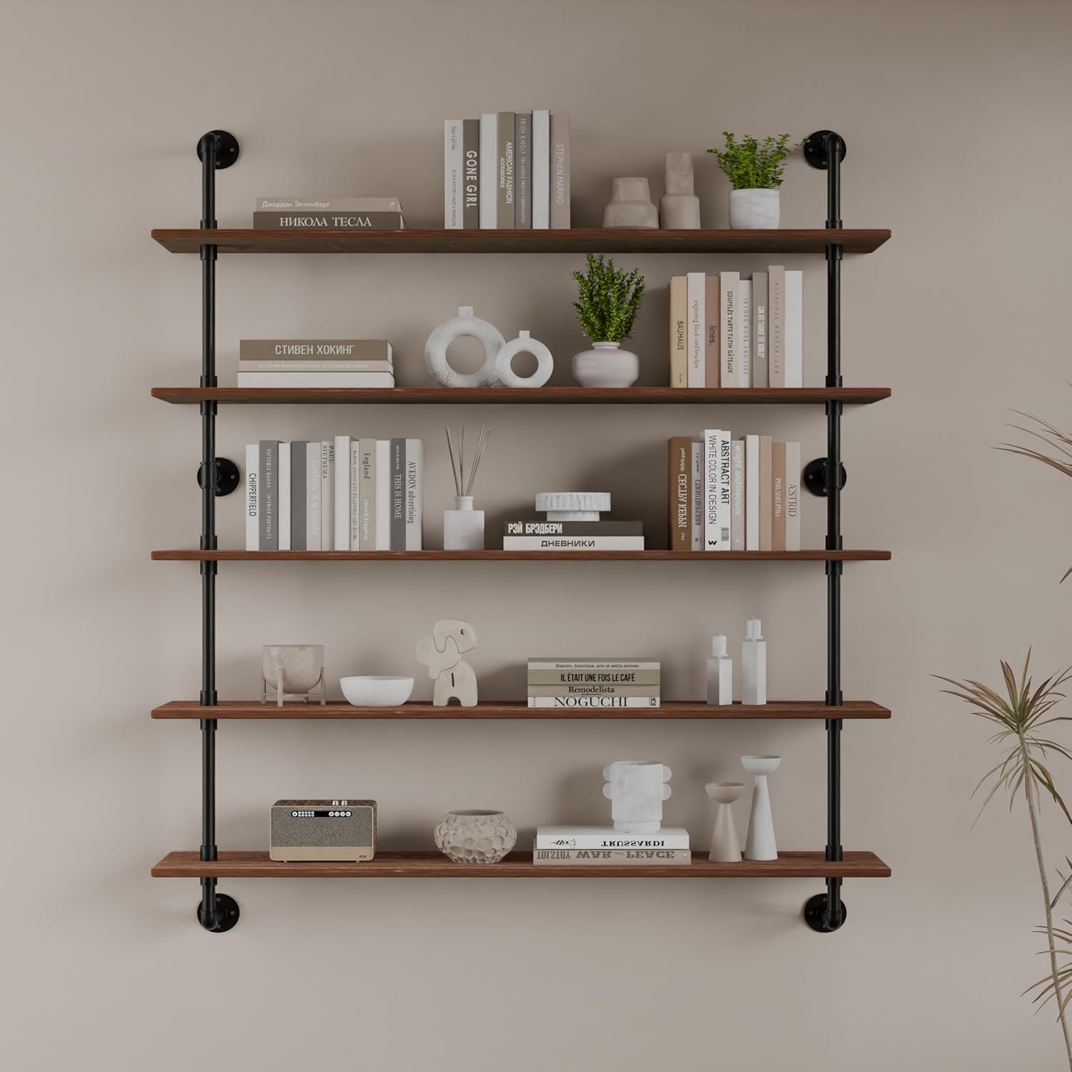 - 【Multiple Use】 This industrial bookshelves is a great choice for a bedroom shelves,farmhouse pipe shelves or for kitchen.