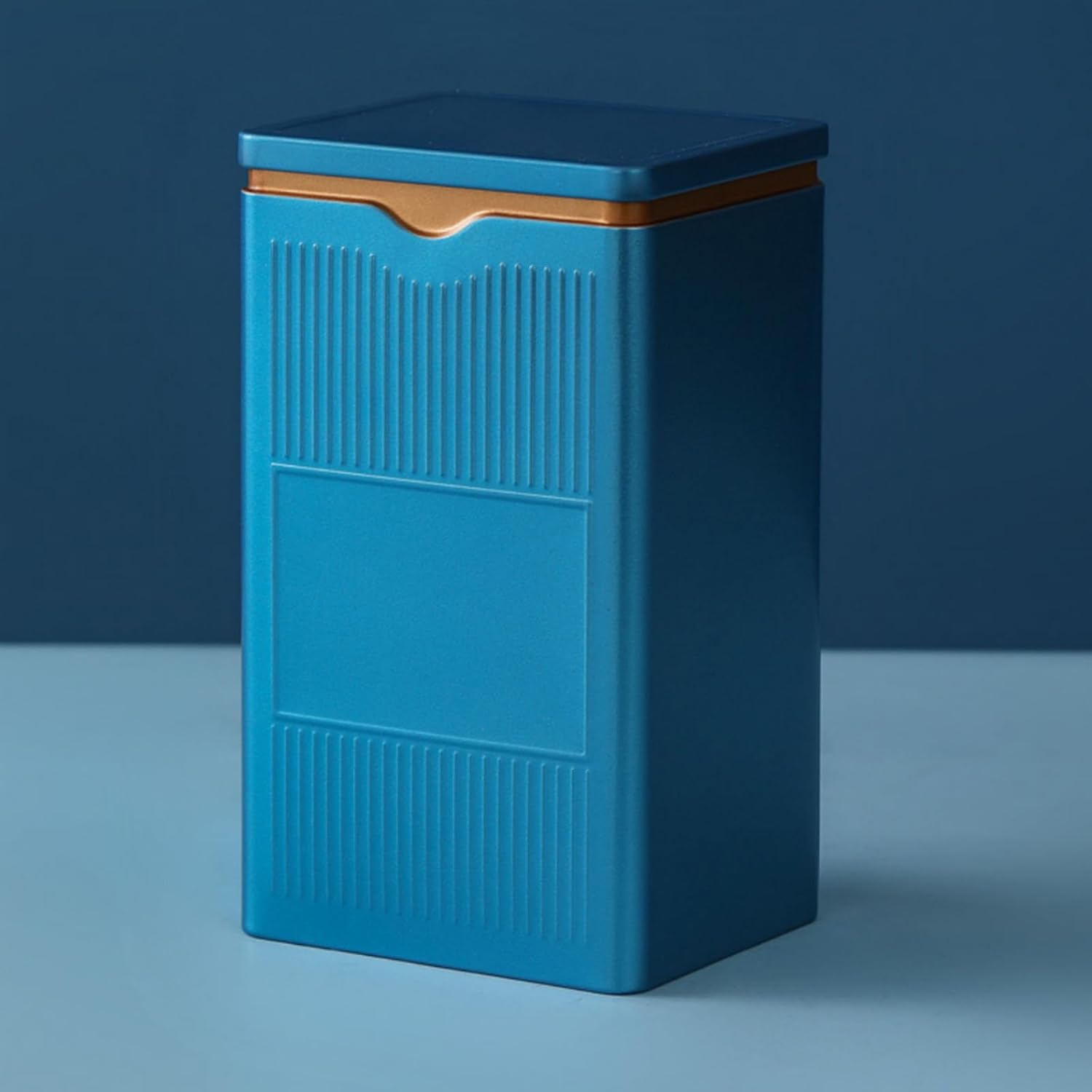 HAN SHENG Square Airtight Tea Tins - Blue, Food Storage Containers for Loose Tea, Coffee, Spices (5.9"x3.4"x2.8")